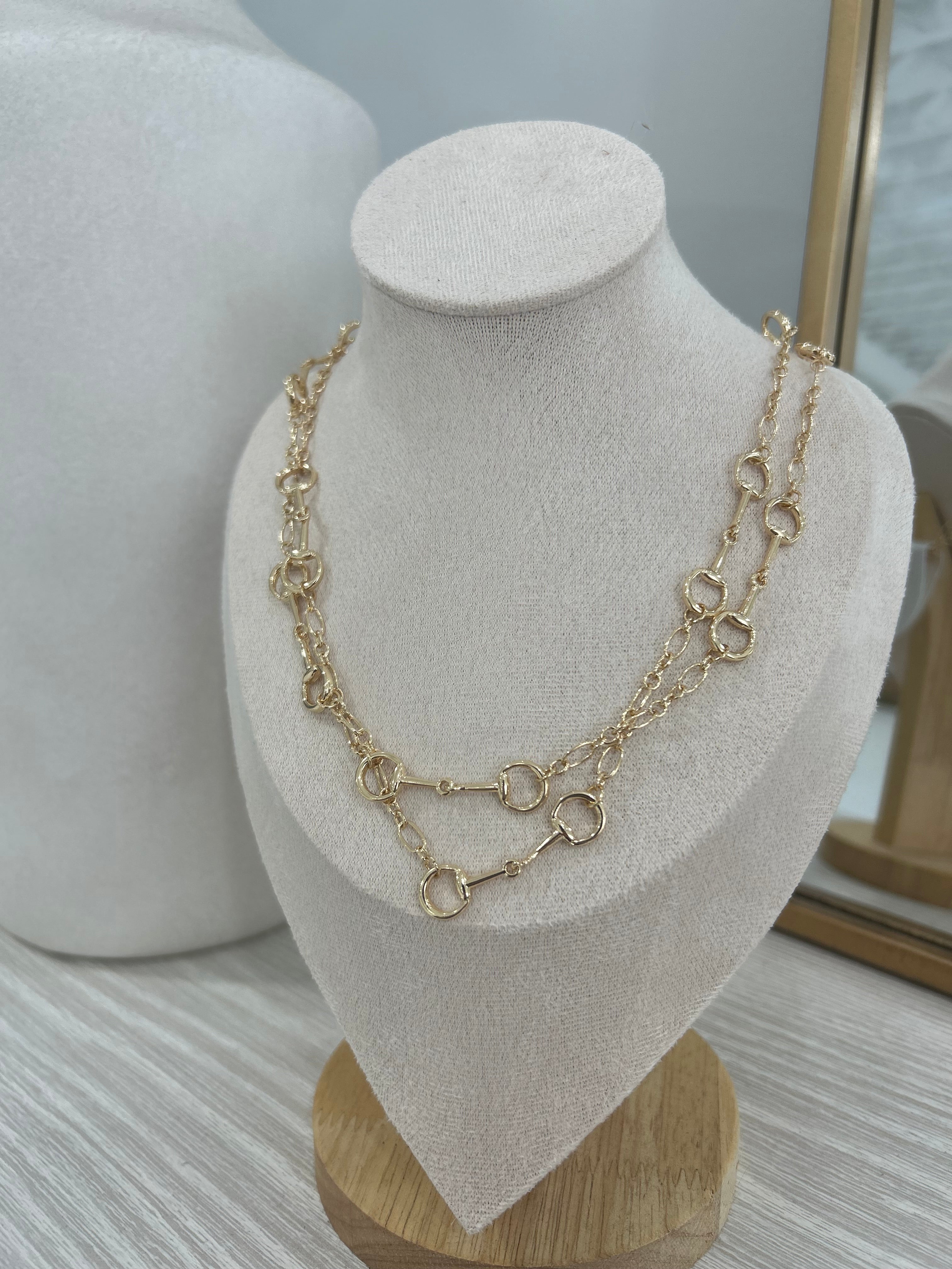 Unleash your bold side with this striking horsebit chain necklace. Featuring the iconic equestrian-inspired horsebit design, this piece commands attention with its confident metallic gleam and substantial presence. Perfect for those who refuse to blend in, it pairs effortlessly with everything from leather jackets to evening wear. Make a statement that says you're fearless, sophisticated, and unapologetically yourself.