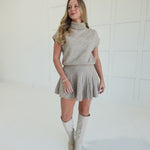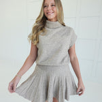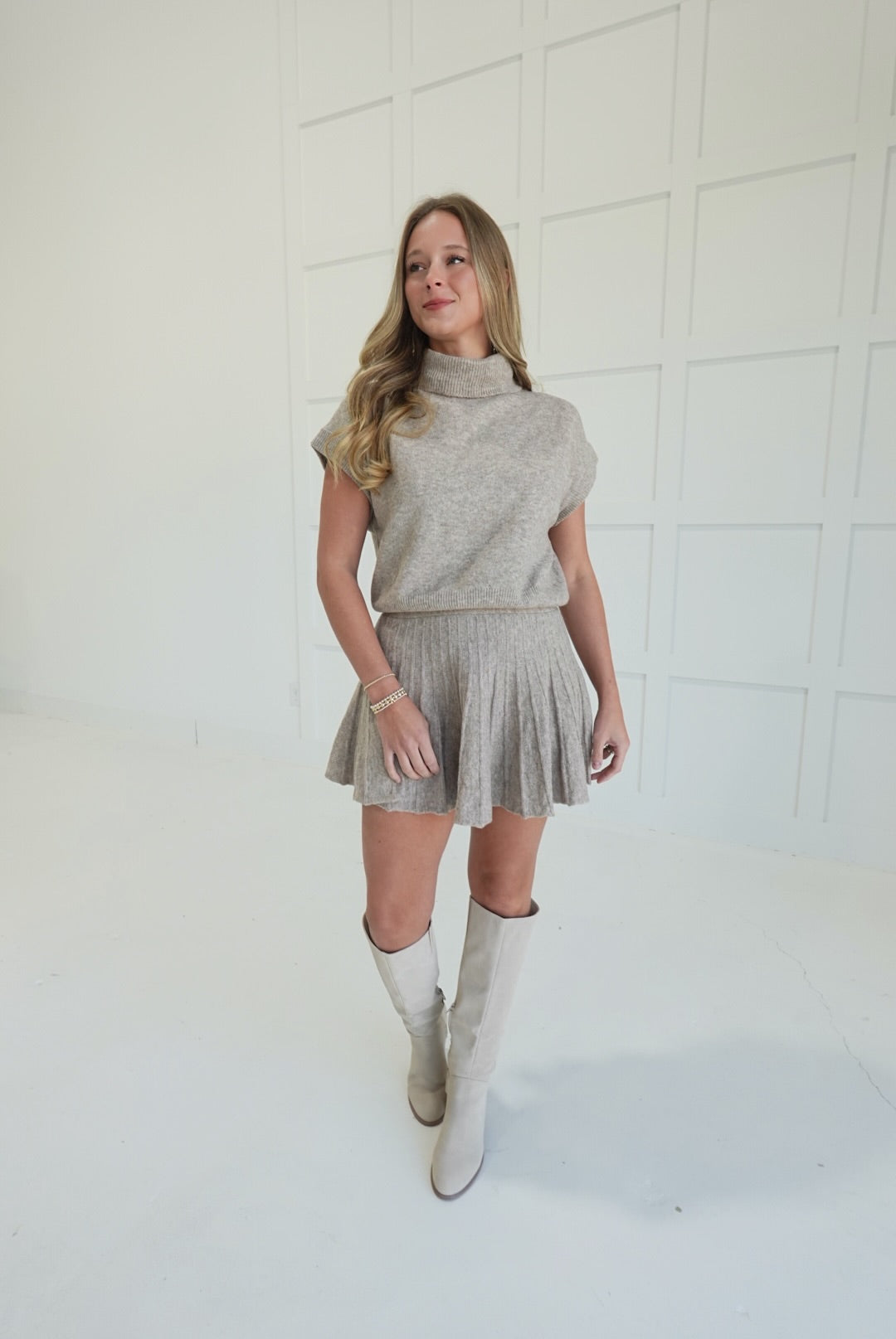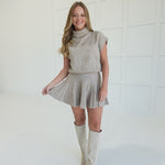 - Sweater Set - Turtleneck Top With Cap Sleeves + Mini Skirt