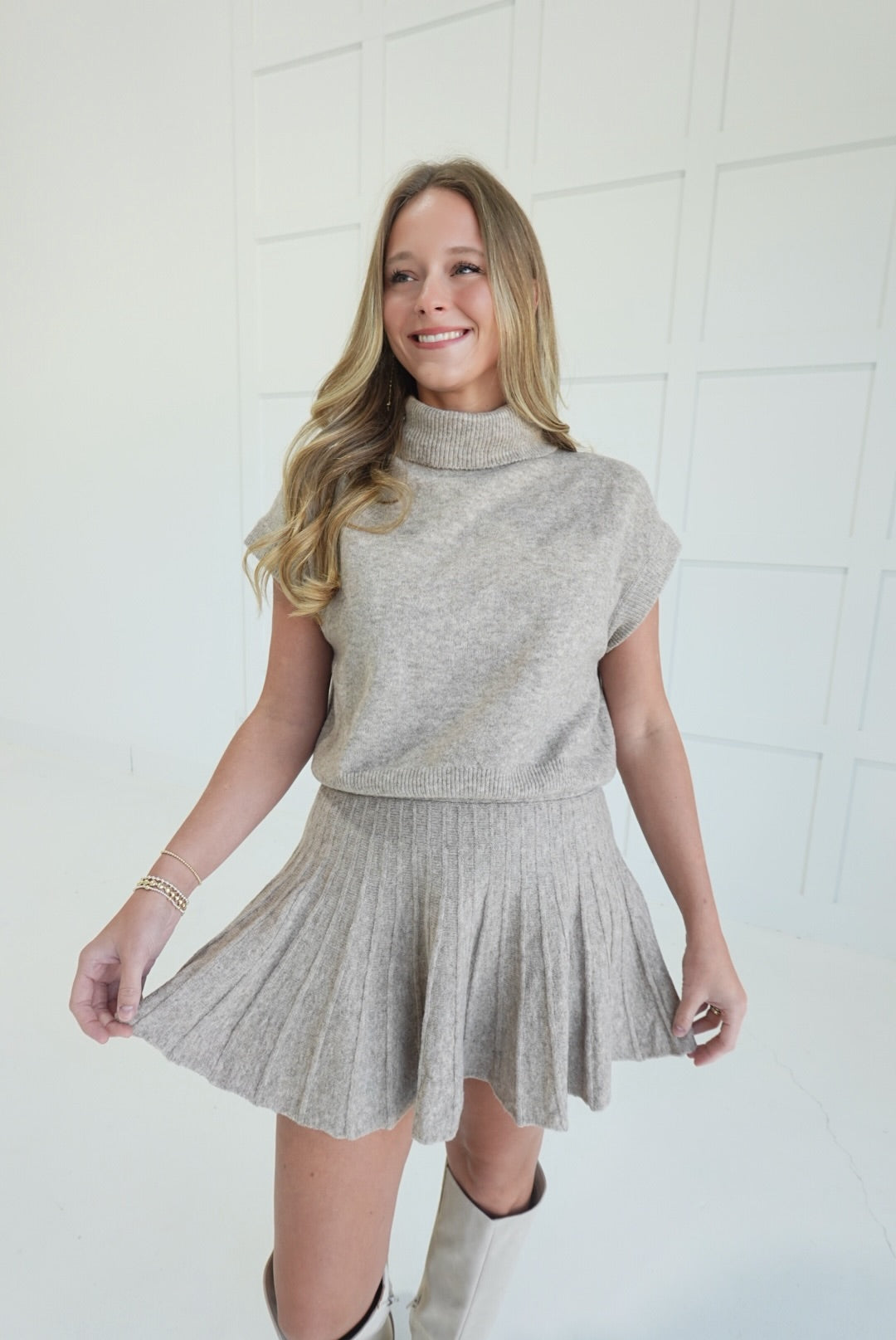 The Clique Sweater Set pairs a cozy cap sleeve turtleneck sweater with a stylish mini skirt, creating an effortlessly chic look. Soft and comfortable, the sweater offers a flattering fit while the mini skirt adds a playful touch perfect for any occasion. This set makes dressing easy without sacrificing style, helping you feel confident and put-together wherever you go.