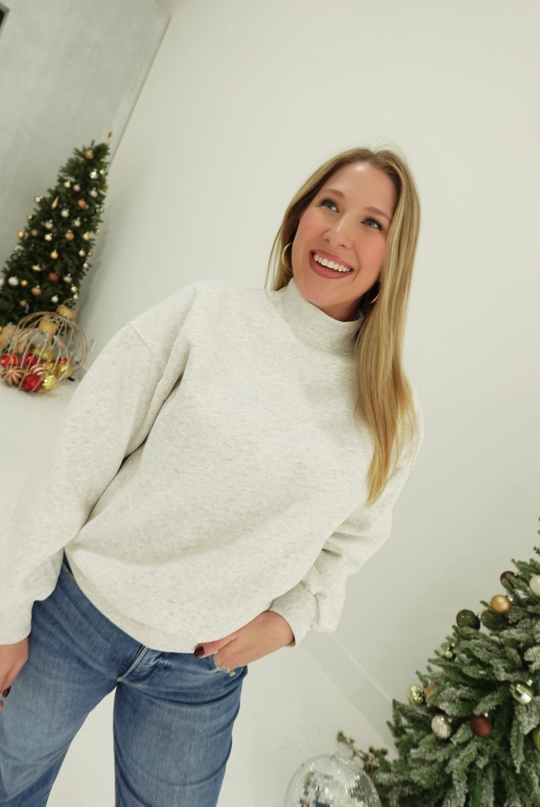 - Mock Neck Pullover With Relaxed Silhouette