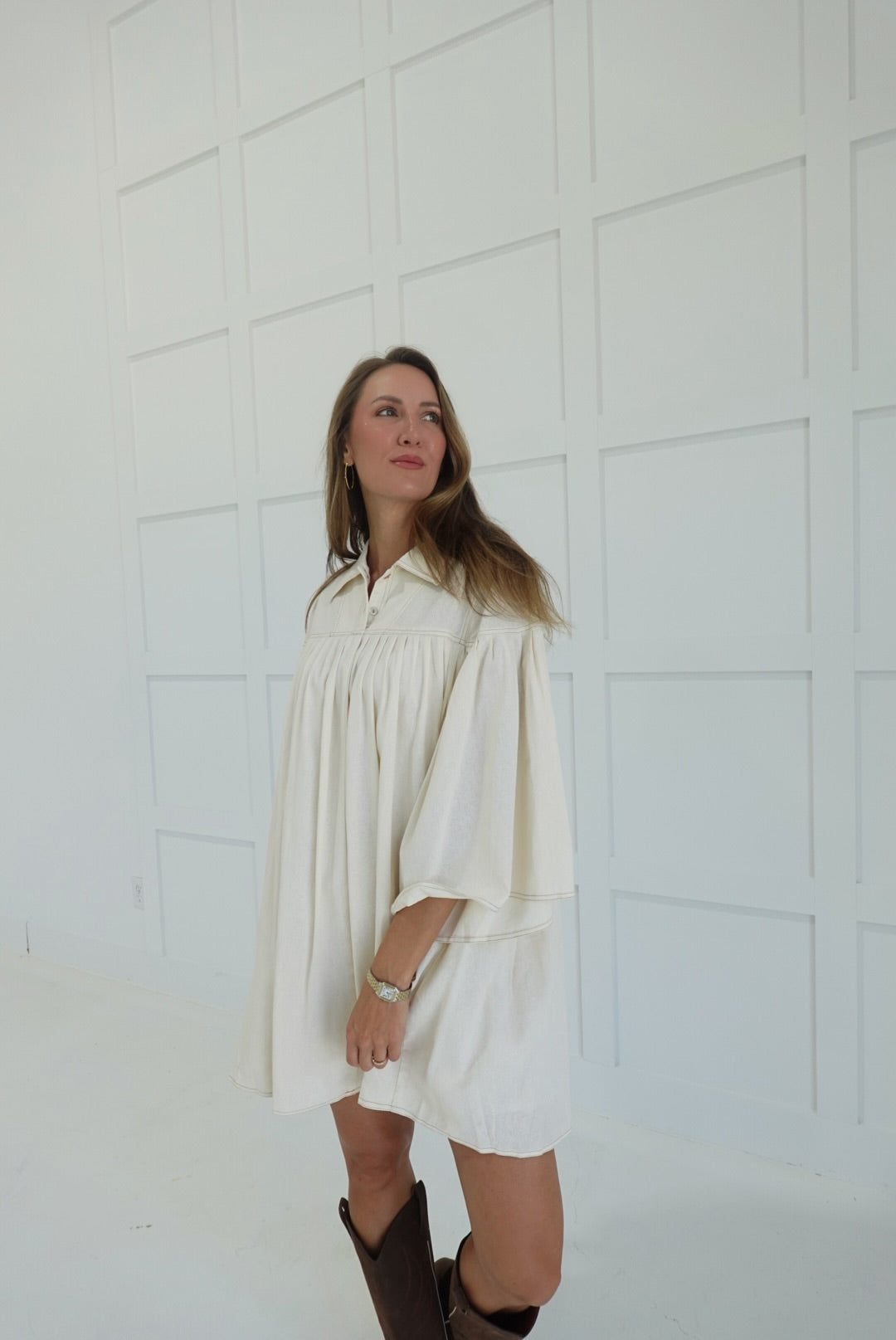 The Imogen Linen Dress offers a comfortable and stylish choice with its breathable linen blend fabric. Featuring elegant pleat details and a flattering swing silhouette, this fully lined dress ensures both comfort and coverage. Perfect for warm days, it combines effortless style with a supportive fit that moves with you.