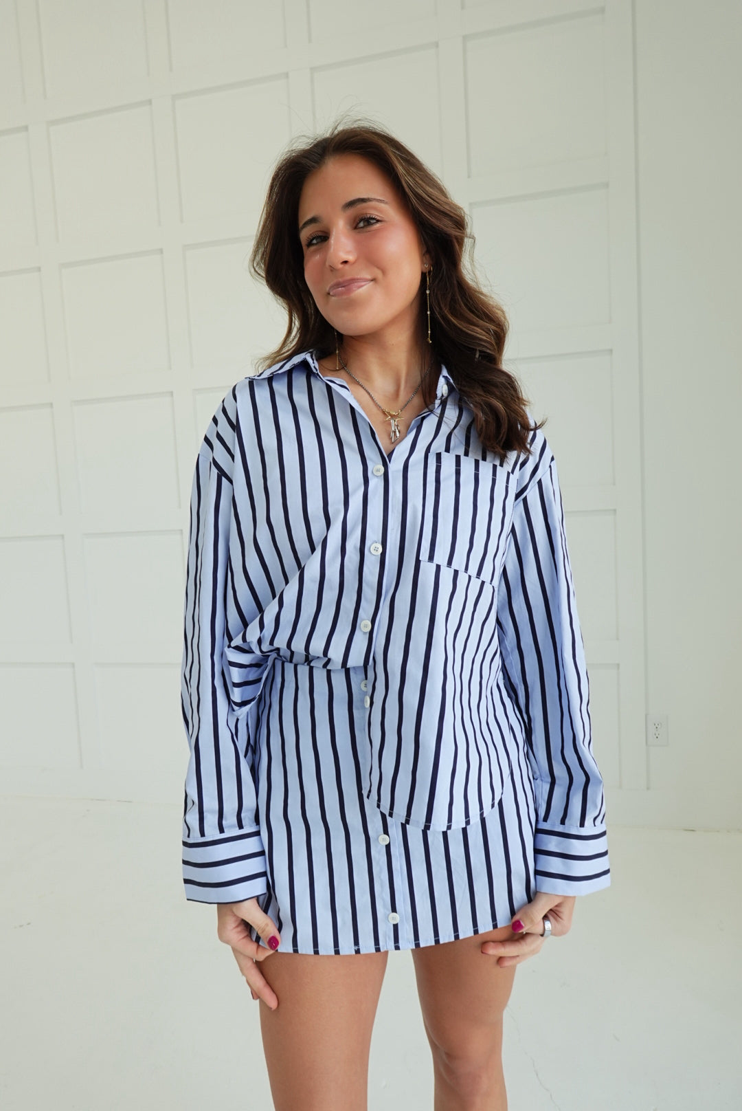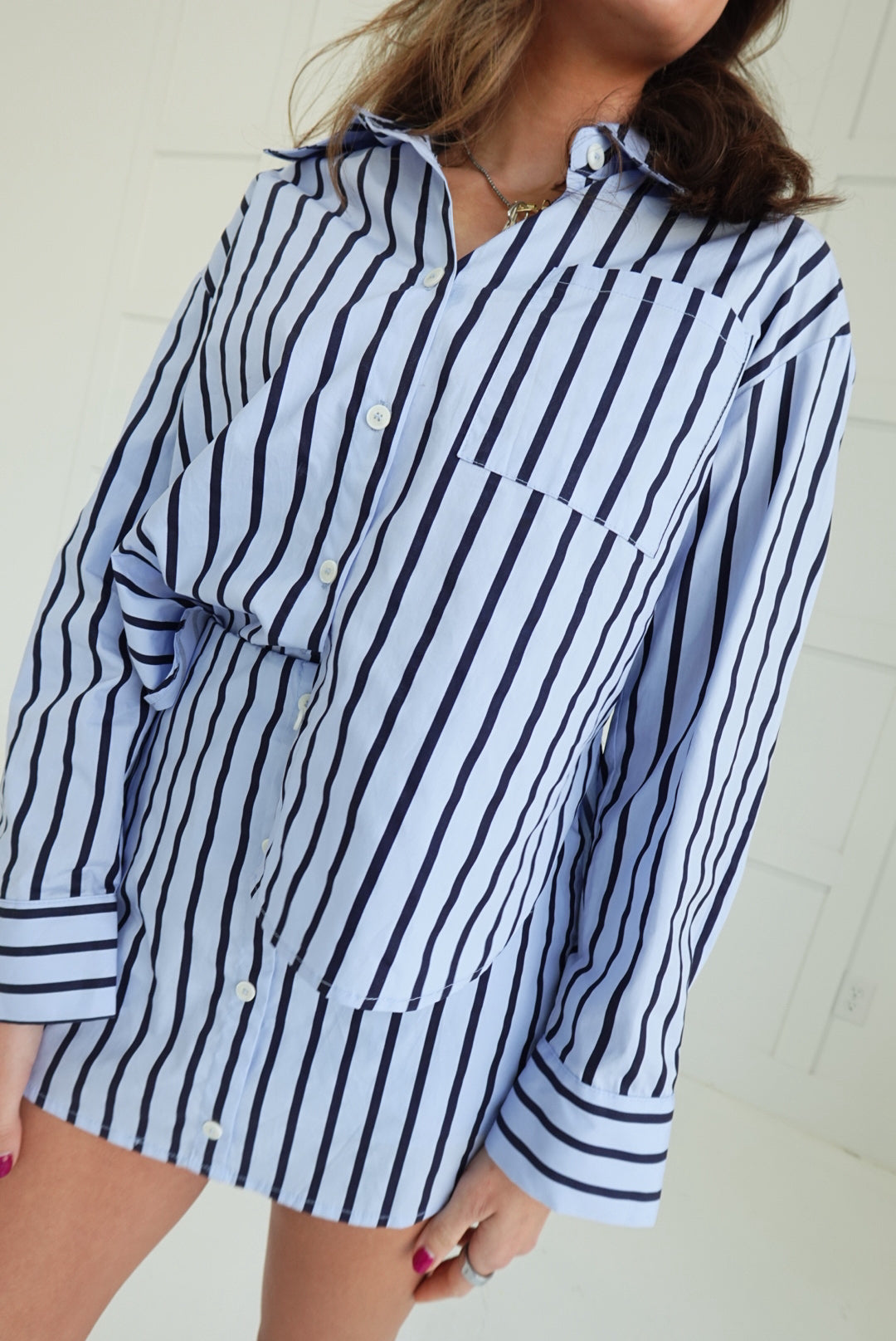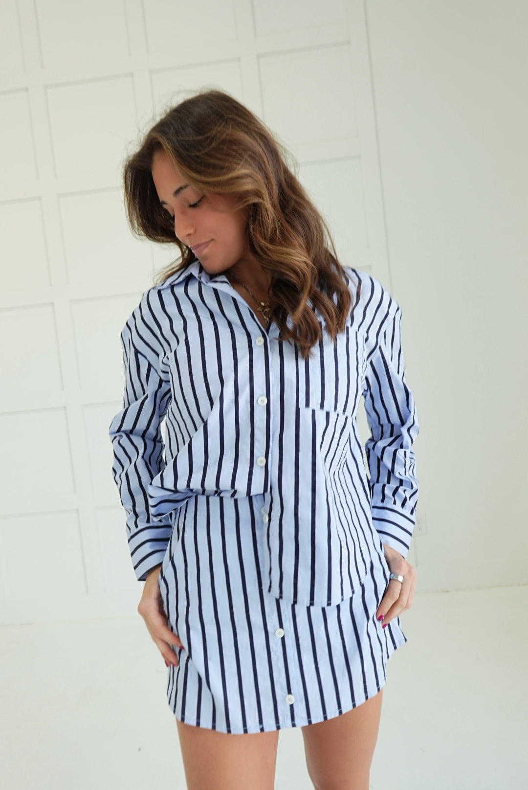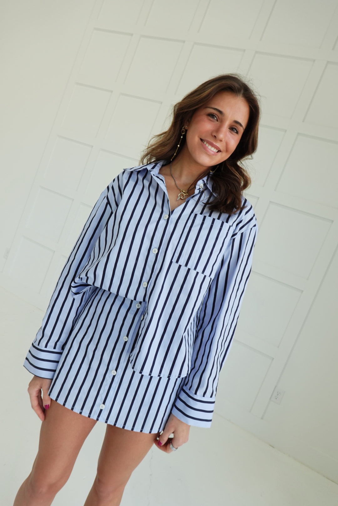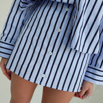 Make a statement in this bold striped long sleeve top paired with a coordinating skort. The sharp contrast of the stripes commands attention while the relaxed silhouette keeps you moving through your day with confidence. Layer it, style it solo, or own the room—this set refuses to blend in. Perfect for those who dress to stand out.