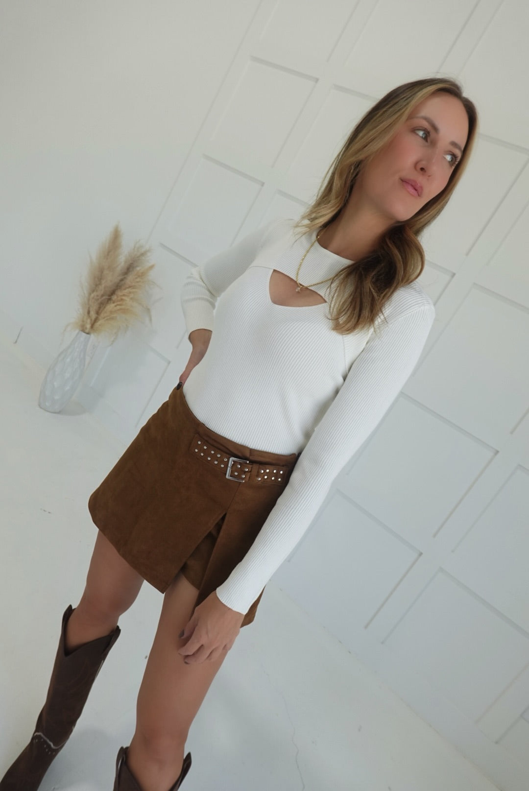 - Bust Cut-Out Long Sleeve Ribbed Top