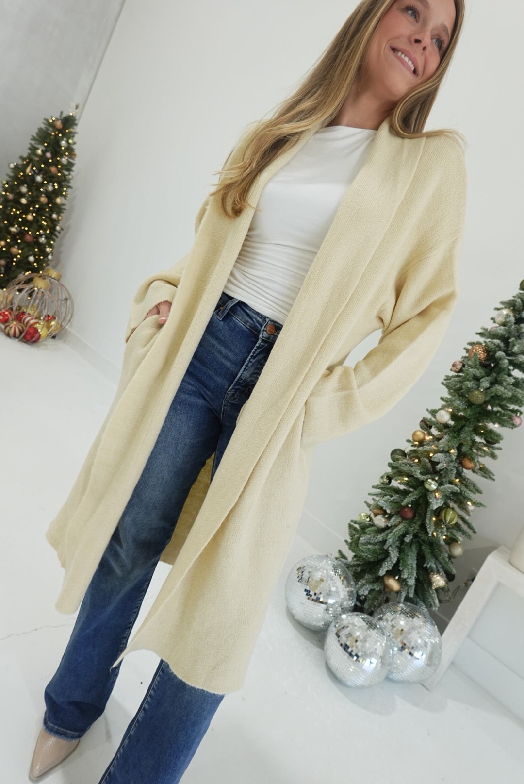The In Your Dreams Duster is a cozy longline open front duster designed to provide warmth without sacrificing style. Its soft fabric offers gentle comfort, making it perfect for layering over any outfit. The open front design allows for easy wear and versatility, giving you a relaxed yet polished look throughout your day. Ideal for cooler weather, this duster combines practicality with elegance to keep you comfortably stylish.