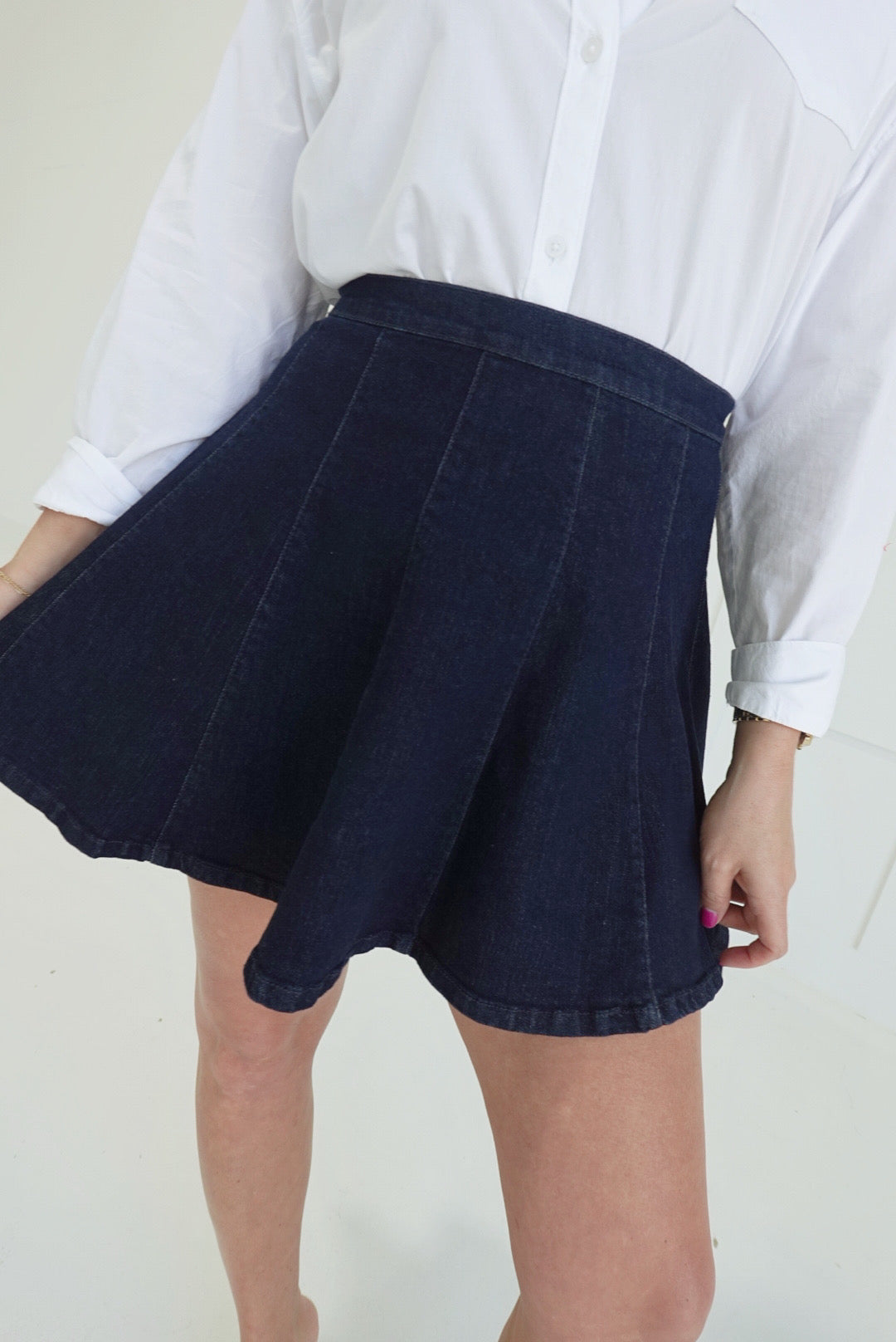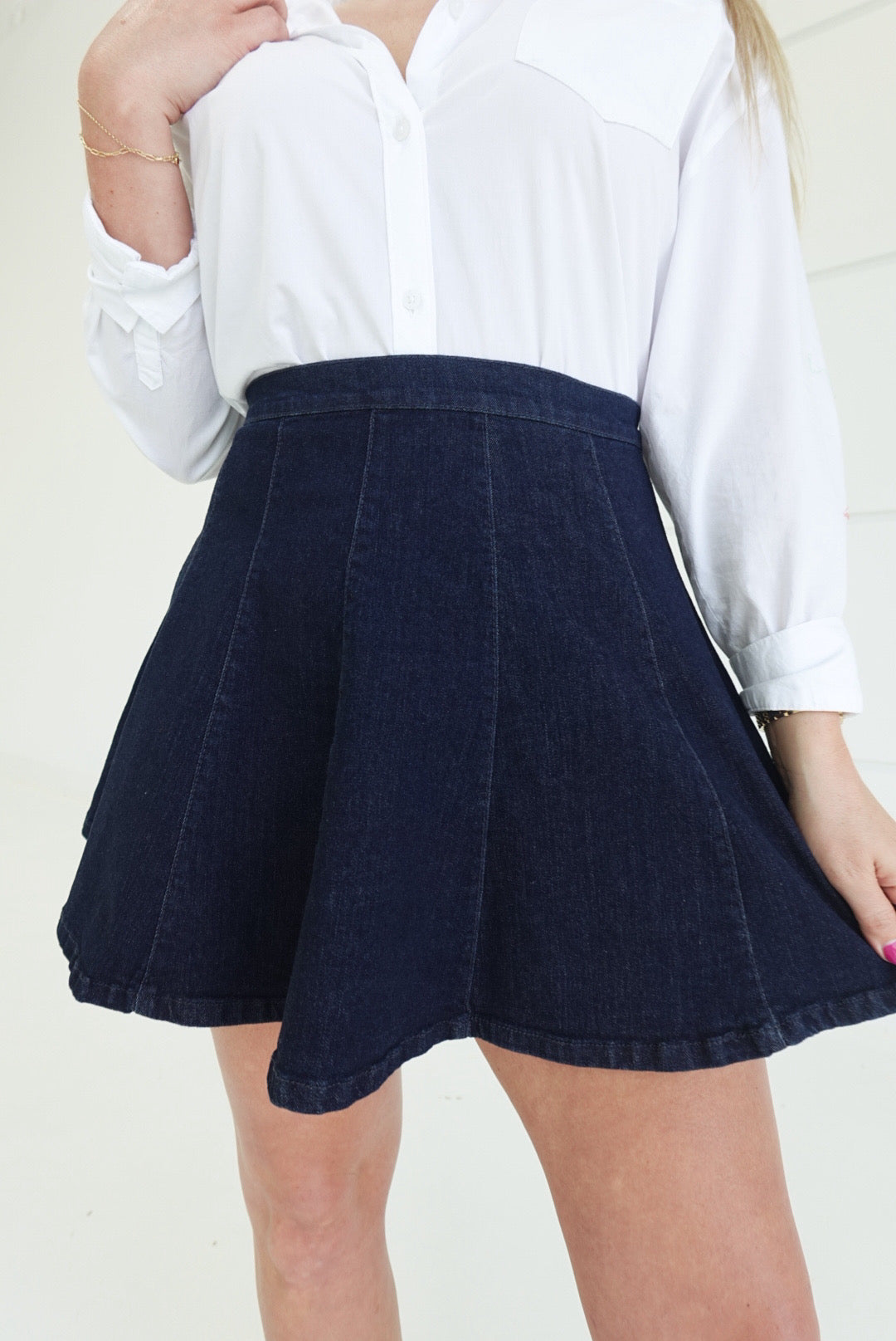 Elevate your everyday style with this indie-inspired flared mini skirt in rich indigo. The flattering A-line silhouette and vintage-influenced flare create movement and dimension, perfect for pairing with fitted tops or oversized tees. Crafted for comfort and versatility, this piece transitions seamlessly from casual outings to weekend adventures. A wardrobe essential that captures effortless, contemporary flair.