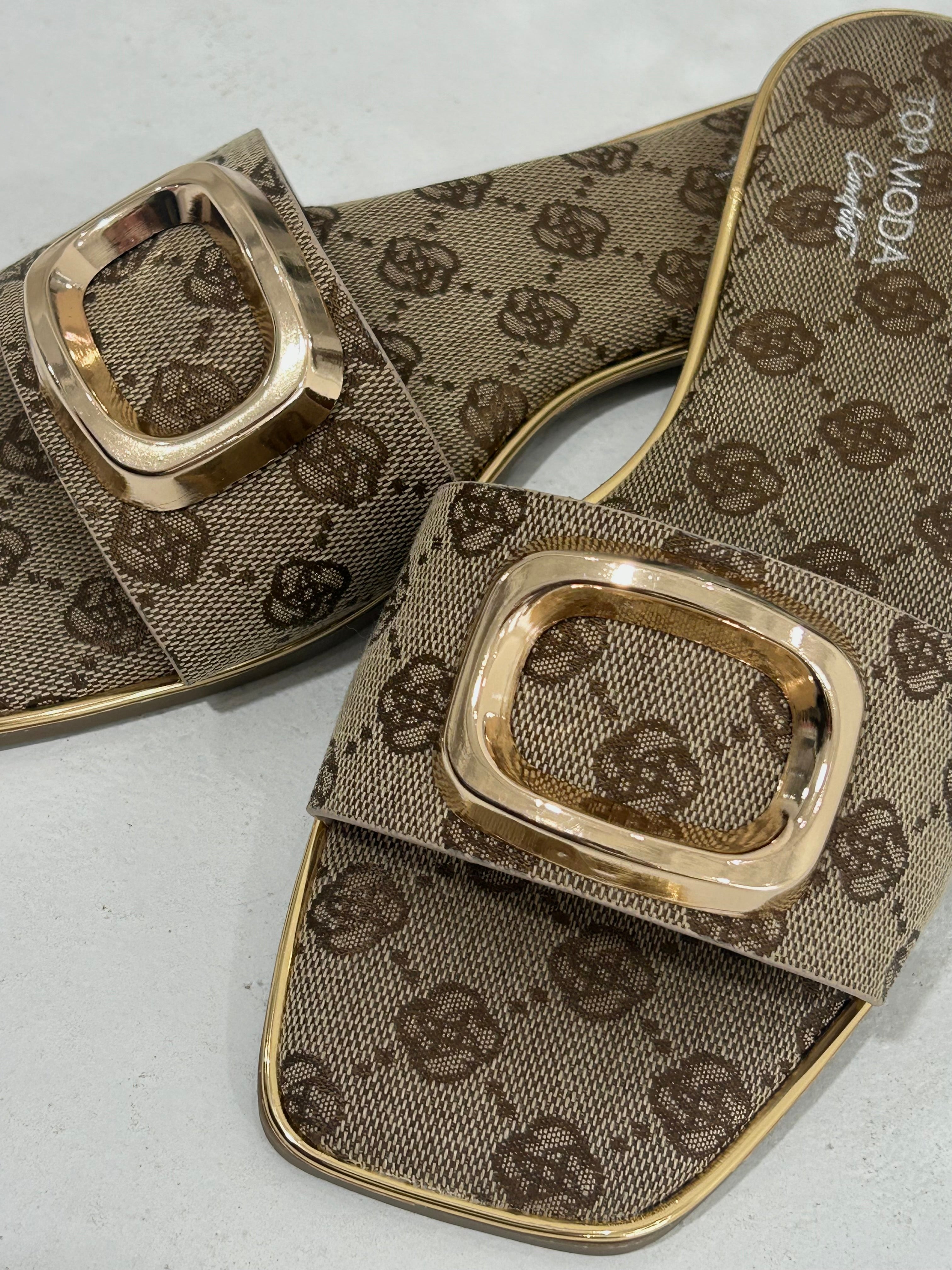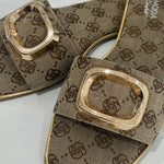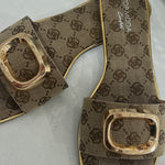 The Indy Mono Sandal commands attention with its bold square-toe silhouette and gleaming gold buckle detail. This statement piece pairs minimalist monogram styling with architectural lines that refuse to blend in. Crafted for those who walk their own path, it delivers effortless sophistication with an edge. Perfect for elevating everyday looks or making a confident entrance at any occasion.