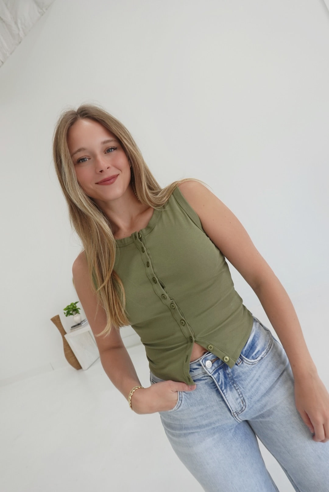 This sleeveless button-down knit top embodies refined versatility with its clean silhouette and thoughtful proportions. The solid design offers enduring sophistication while remaining distinctly contemporary. Its carefully crafted meet-and-greet length creates an elegant line when paired with tailored trousers or statement wide-leg jeans. A considered investment piece that transitions effortlessly between occasions.
