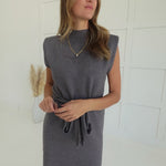 The Irvine Mini Dress combines a stylish mock neck with wide power shoulders for a confident silhouette. Crafted as a cozy sweater dress, it offers comfort while accentuating your shape. Perfect for both casual and dressed-up occasions, this piece balances elegant structure with easy wearability to support your bold fashion choices.