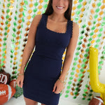 Introducing the Jackson Ave Mini Dress in the color Navy! This dress features a sweetheart neckline and sleeveless design, with delicate lace trim for a touch of elegance. Perfect for a night out or special occasion, this mini dress will have you looking and feeling your best. Time to make heads turn!