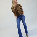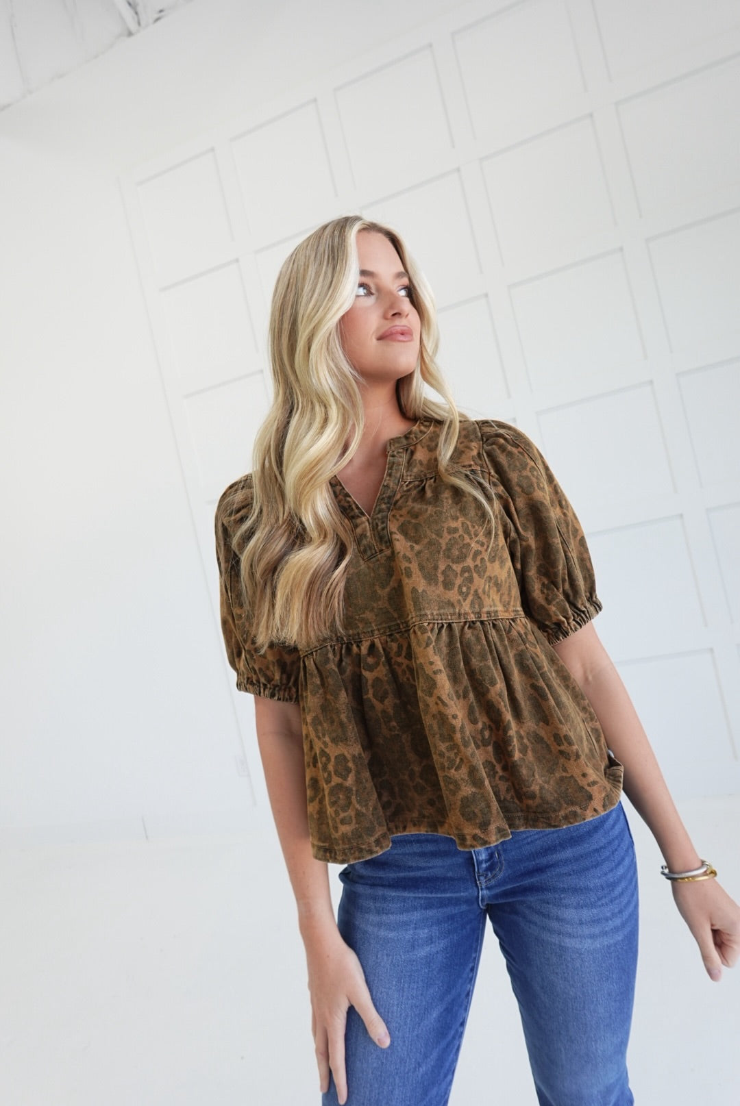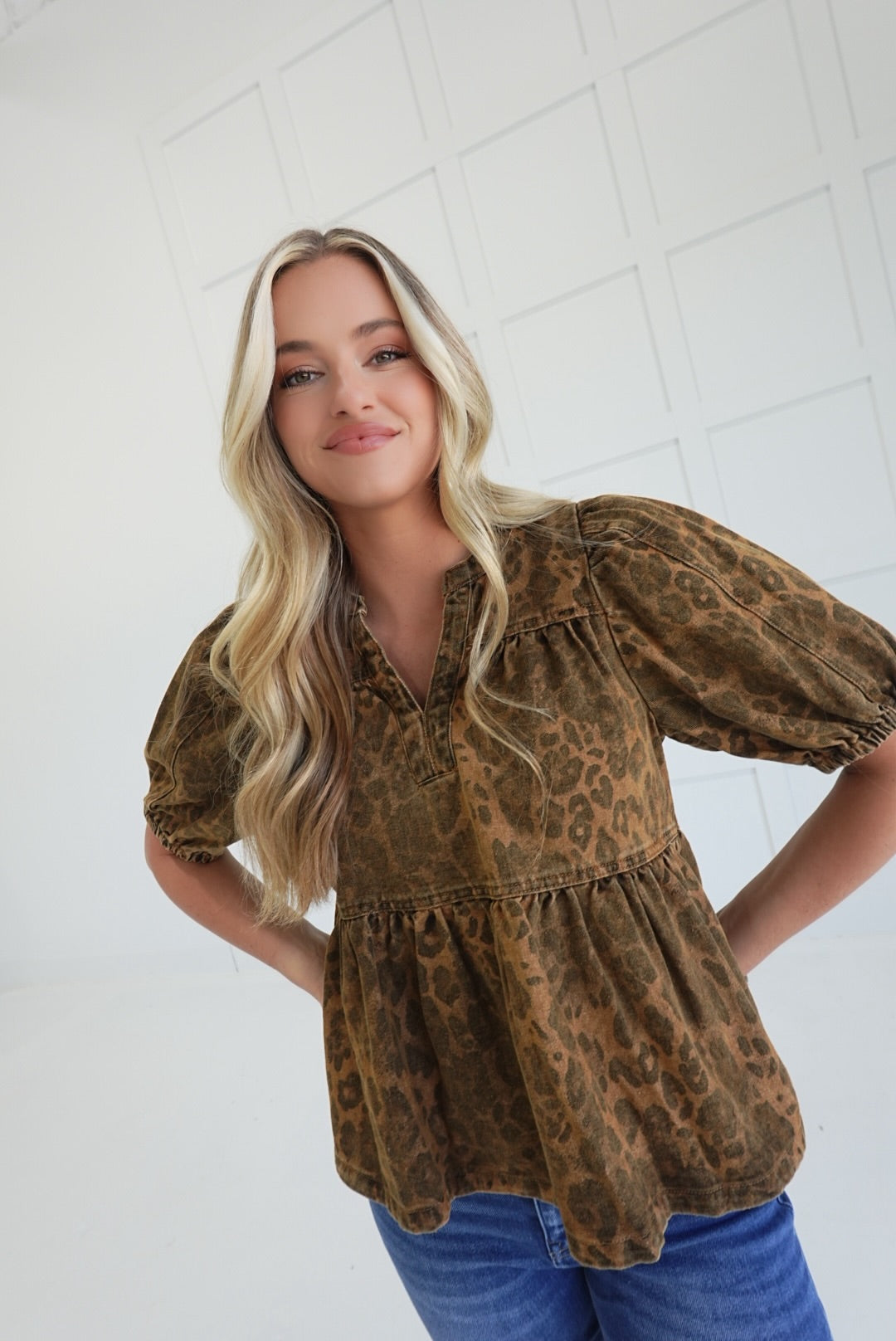 Unleash your wild side with the Jameson Printed Top! This playful pullover top features a fierce leopard print, eye-catching elbow length puff sleeves, and a feminine ruffle hem. It's unlined and lightweight, making it perfect for any occasion. Who says you can't be fierce and fun at the same time?