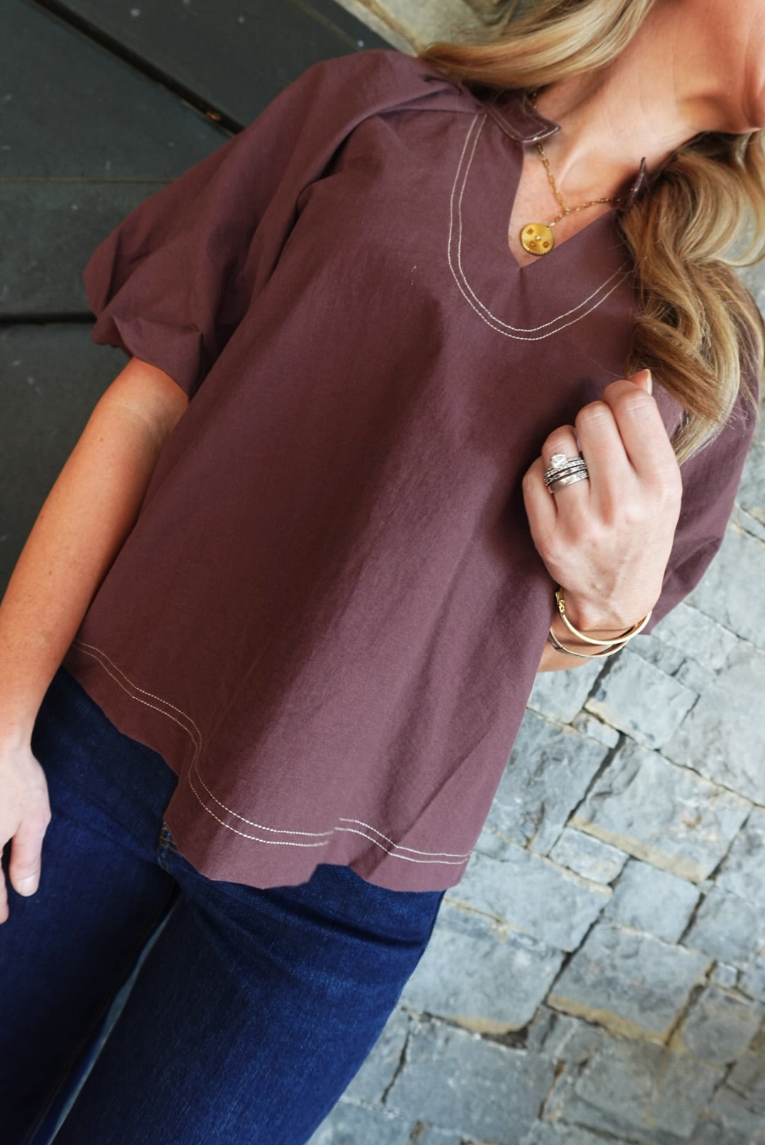 The Jana Top features elegant puff sleeves and a flattering V-neckline, combining comfort with a stylish silhouette. Its design enhances your natural shape while offering a soft, breathable fit perfect for everyday wear. This top supports your confidence with a touch of classic charm, making it a versatile addition to your wardrobe.