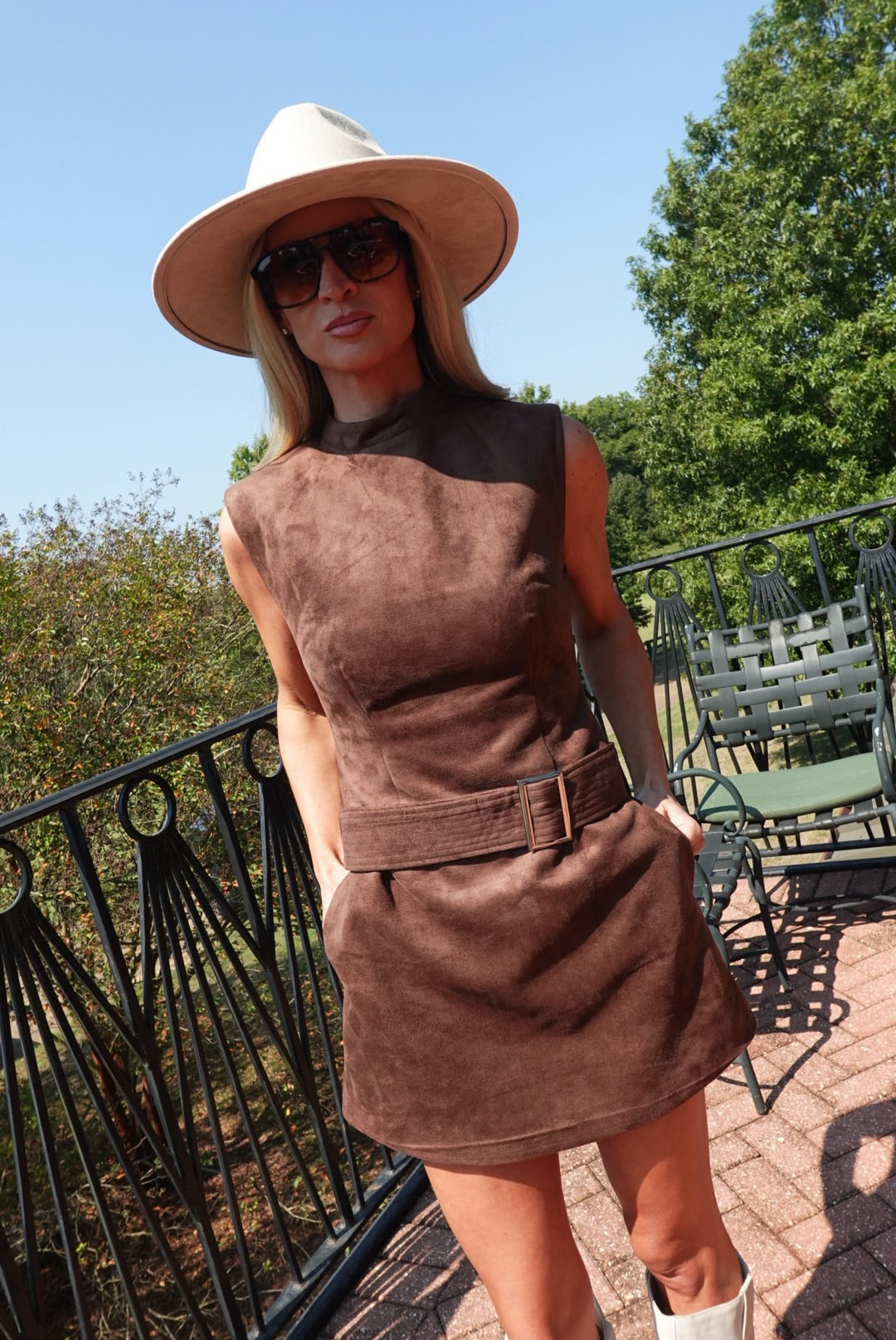 - Belted Suede Mini Dress