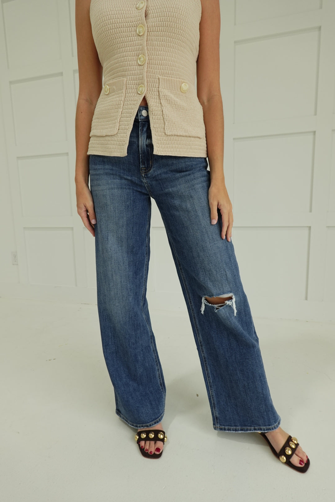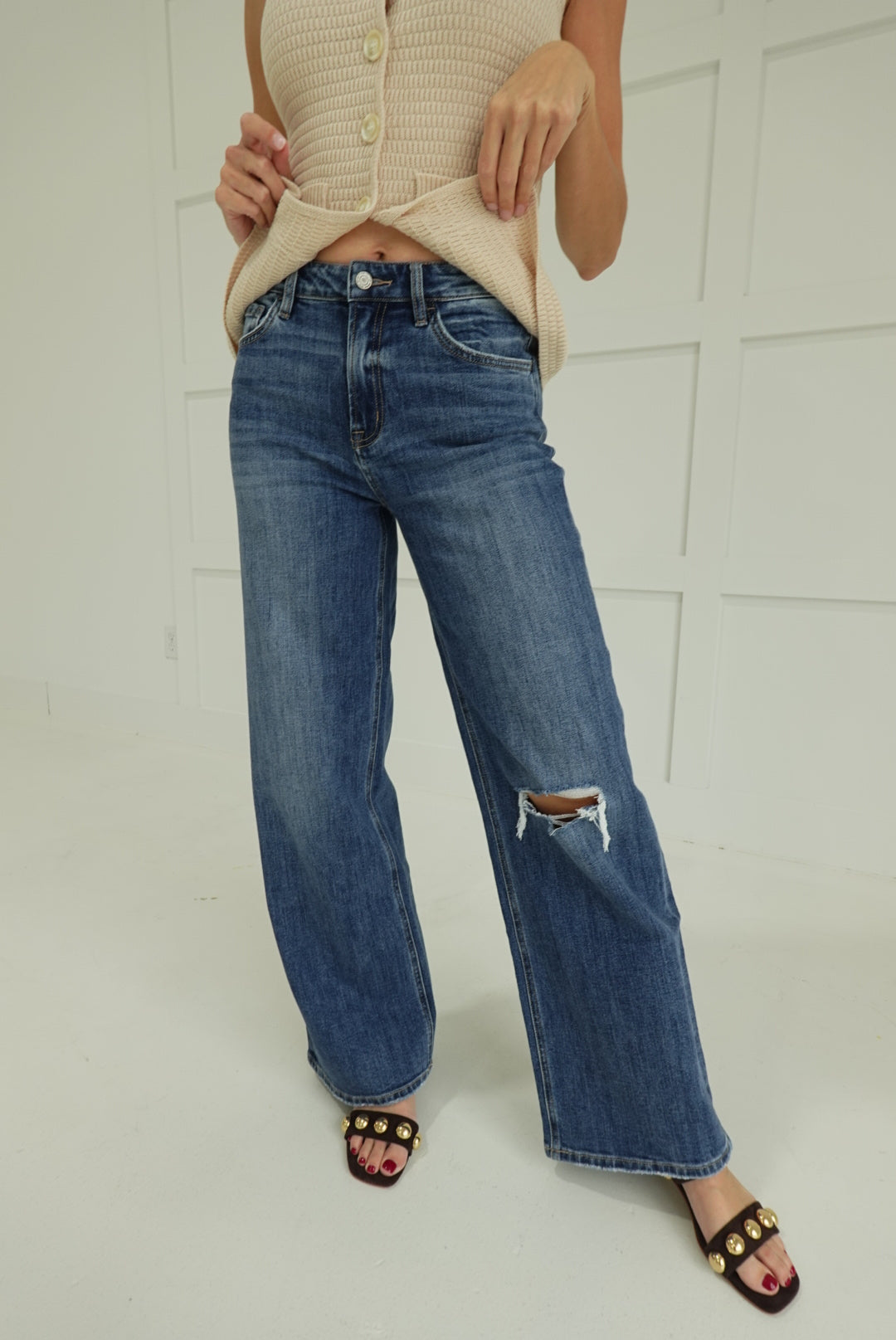 Janine Wide Leg Jeans command attention with their bold silhouette and high-rise cut that elongates and flatters. Crafted for those who refuse to blend in, these jeans deliver runway-worthy proportions with everyday wearability. The generous leg opening creates dramatic movement while the structured waistband ensures a secure, confident fit. Perfect for styling with everything from crop tops to oversized blazers, Janine makes a statement that says you're unapologetically in control of your look.