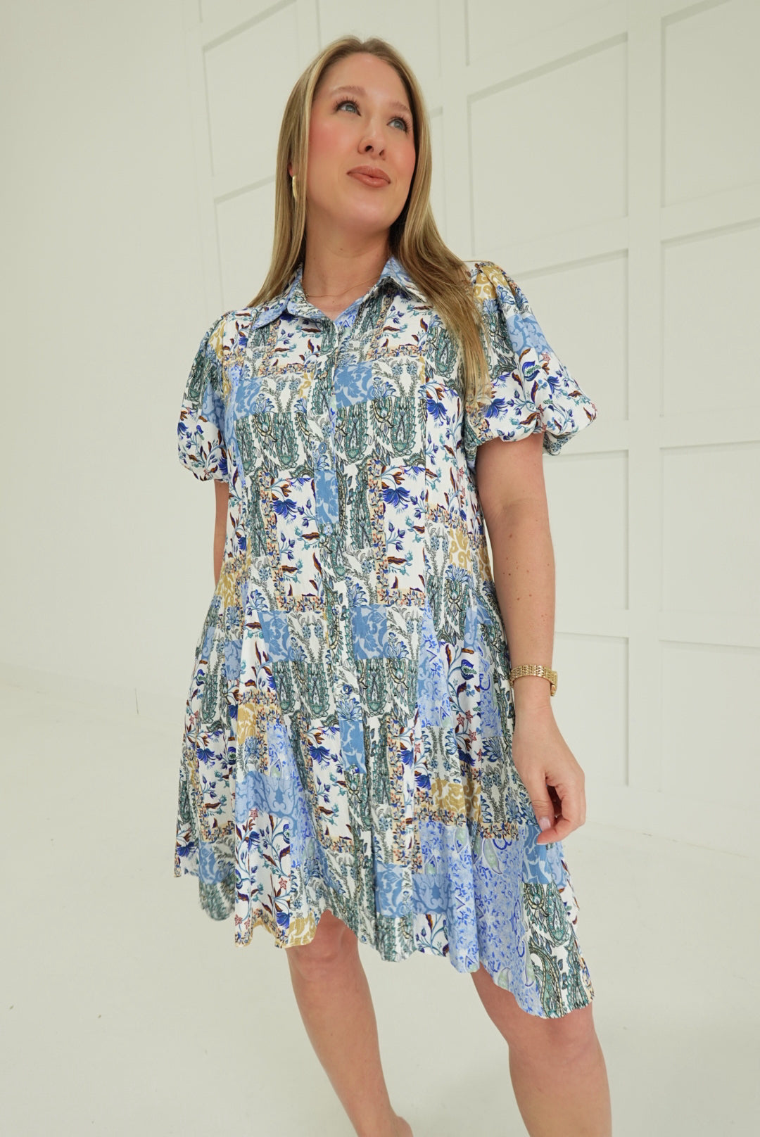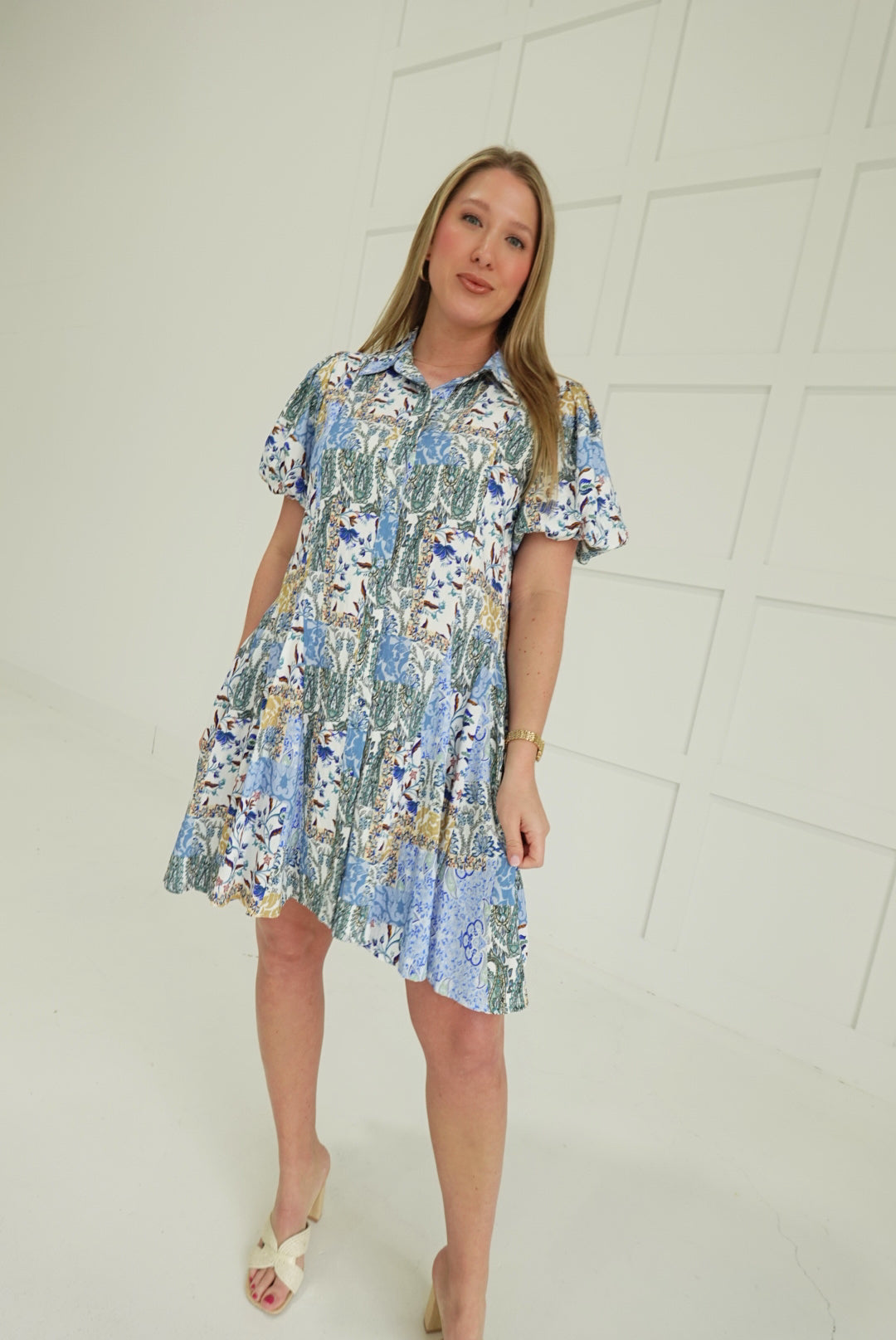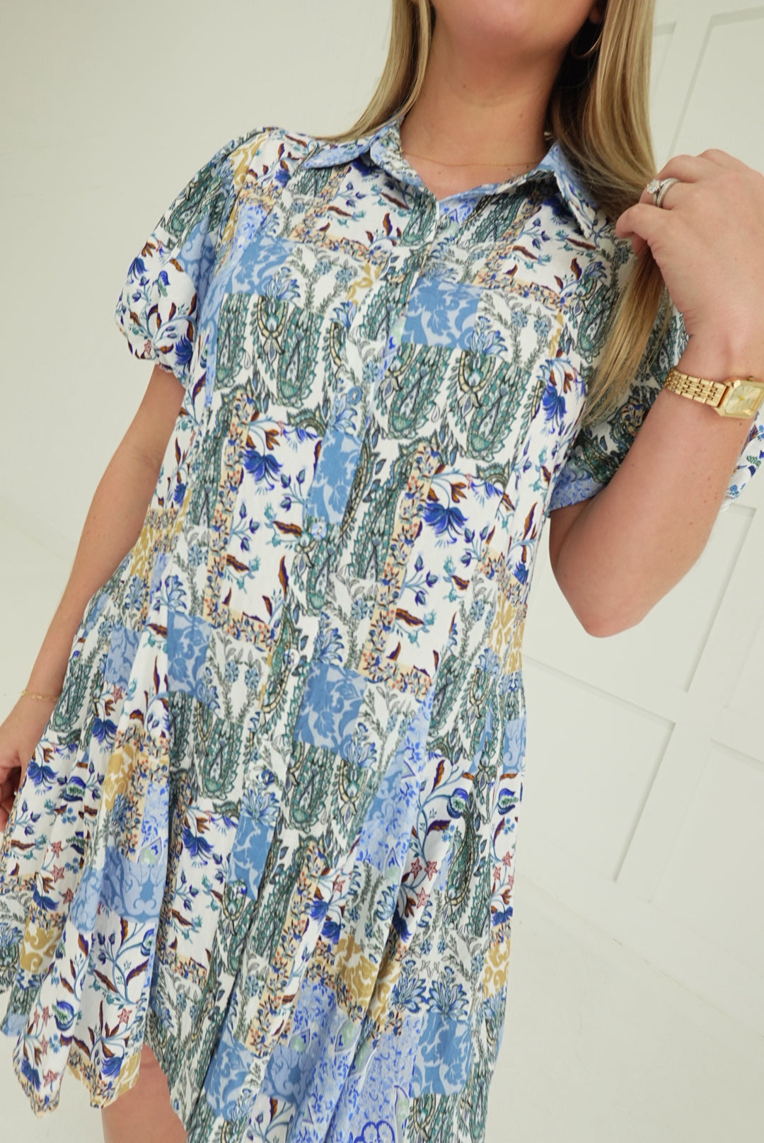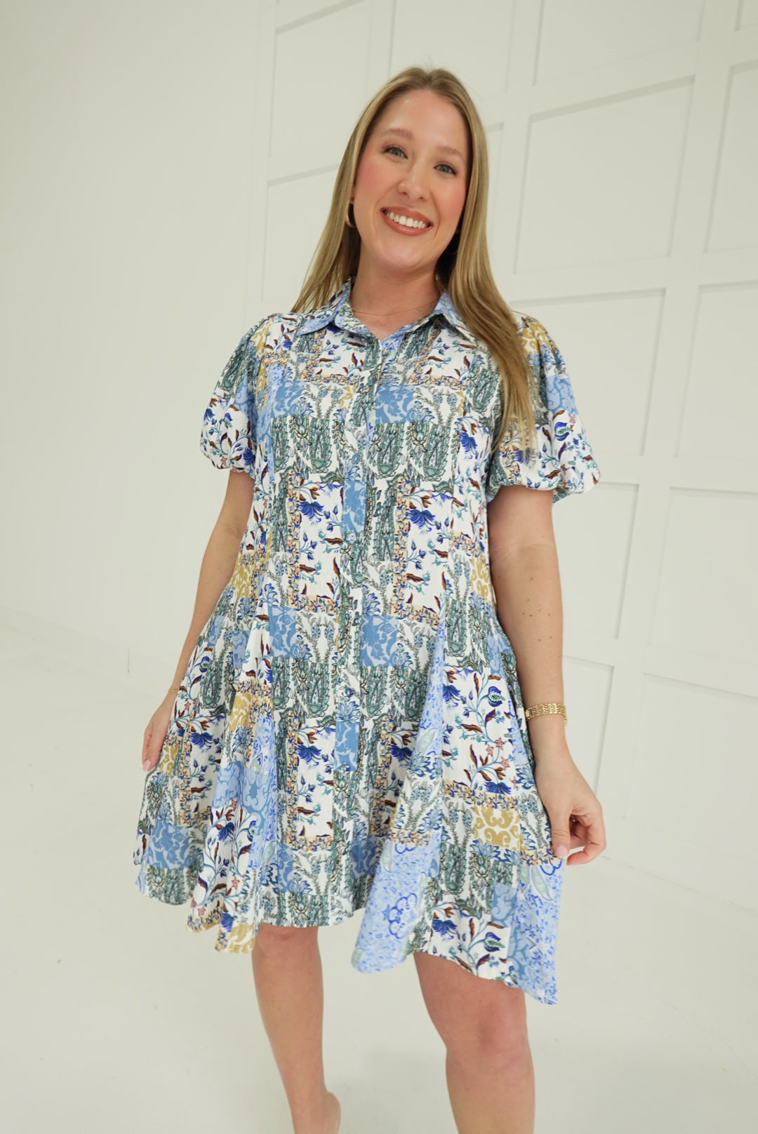 Embrace bold style with the Jules Printed Mini Dress, a fearless spring essential that commands attention. This striking piece features an eye-catching mixed print that refuses to blend in, paired with a flared skirt that moves with confidence and flair. The signature bubble hem sleeves add an unexpected edge, transforming a classic silhouette into something daringly modern. Perfect for those ready to make a statement and turn heads wherever spring takes you.