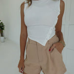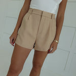 These Karty Shorts feature a pleated, high-waisted design that offers a flattering fit and added comfort. Equipped with belt loops, they allow you to customize your look with your favorite belt. The button and clasp closure ensures a secure and polished finish, making these shorts a versatile addition to your wardrobe. Perfect for both casual and dressier occasions, they combine style and practicality effortlessly.