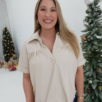 The Kimber Leather Top brings understated elegance to your closet. This short-sleeve leather piece showcases a refined notched V-neck design that flatters and complements any frame. Perfect for layering or wearing solo, it pairs seamlessly with everything from tailored trousers to your favorite denim. Durable and timeless, this top becomes a go-to staple you'll love wearing season after season.