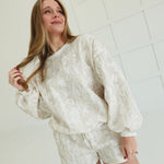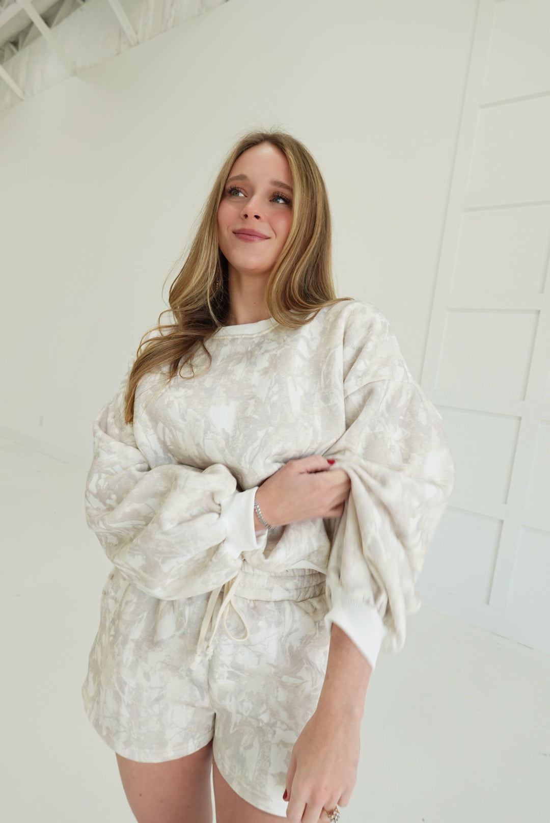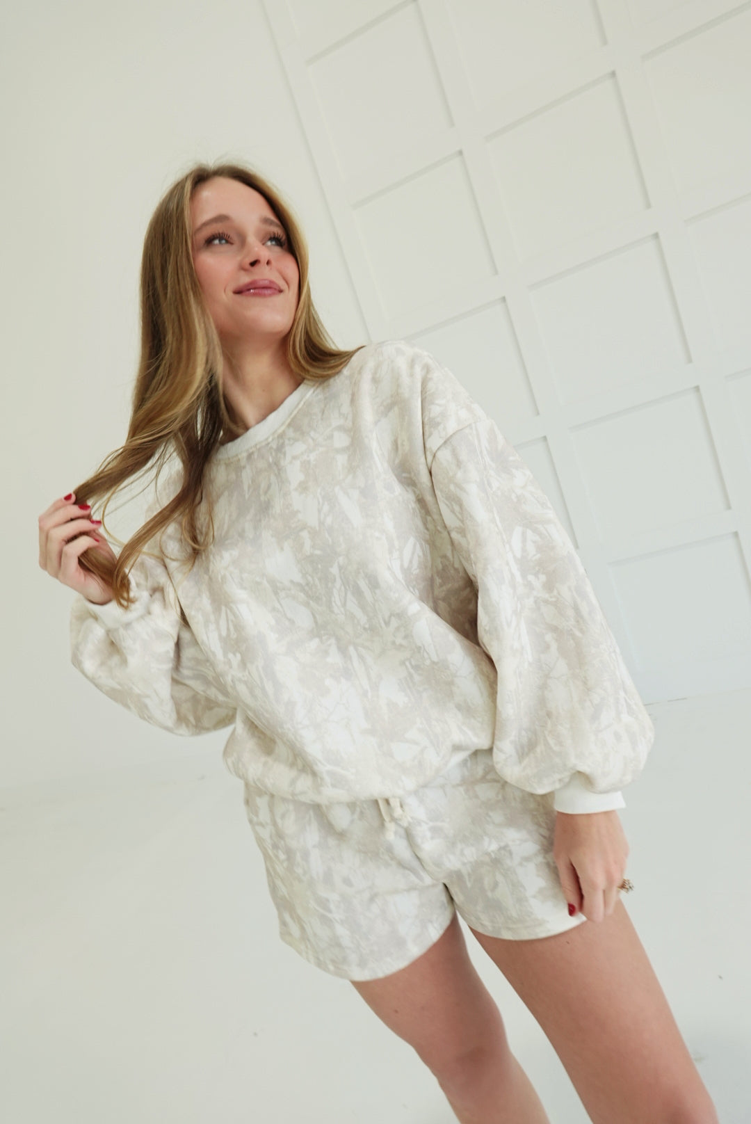 - Elastic Waist + Drawstring Shorts + Crewneck Sweatshirt