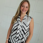 - Sleeveless Geo Print Blouse