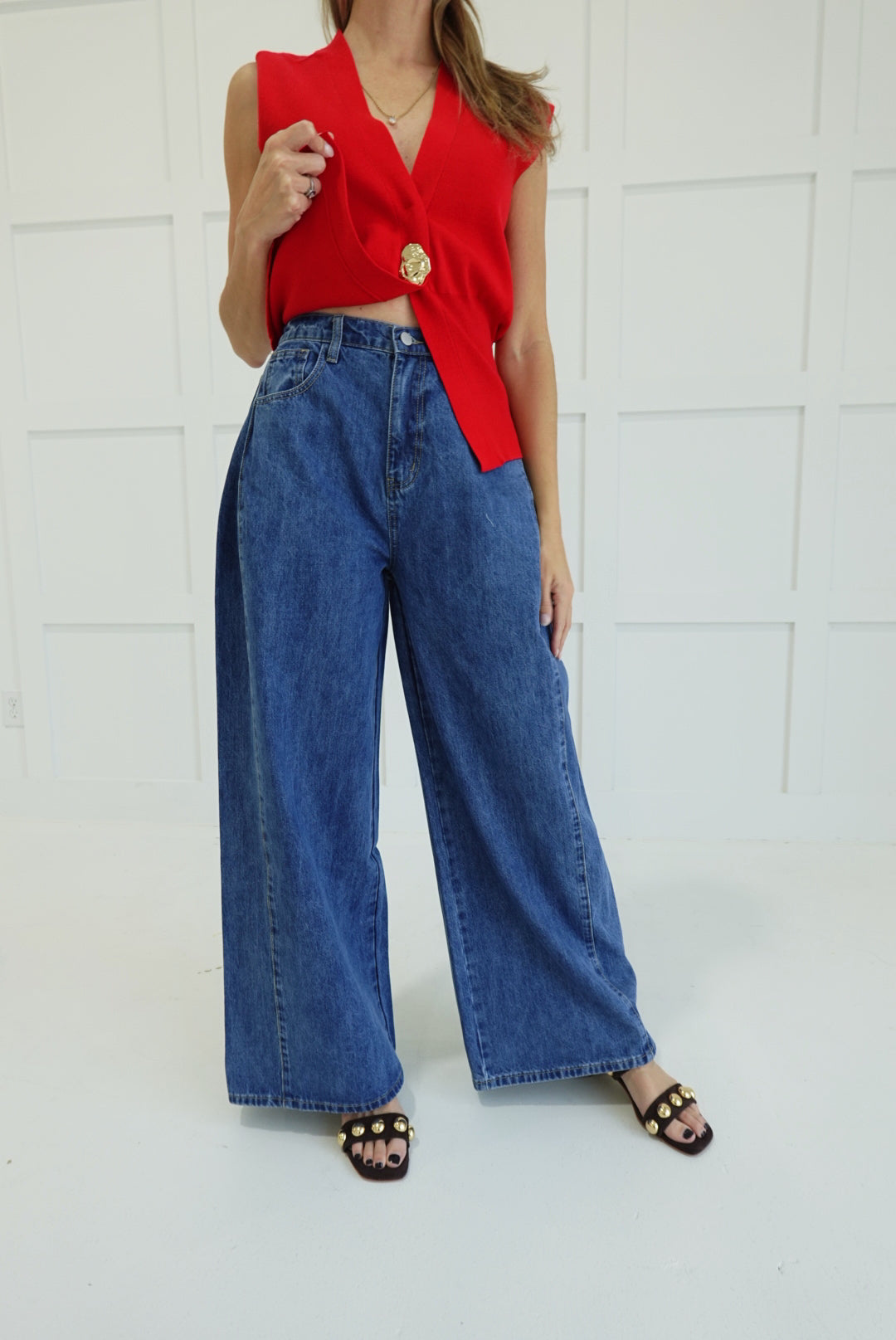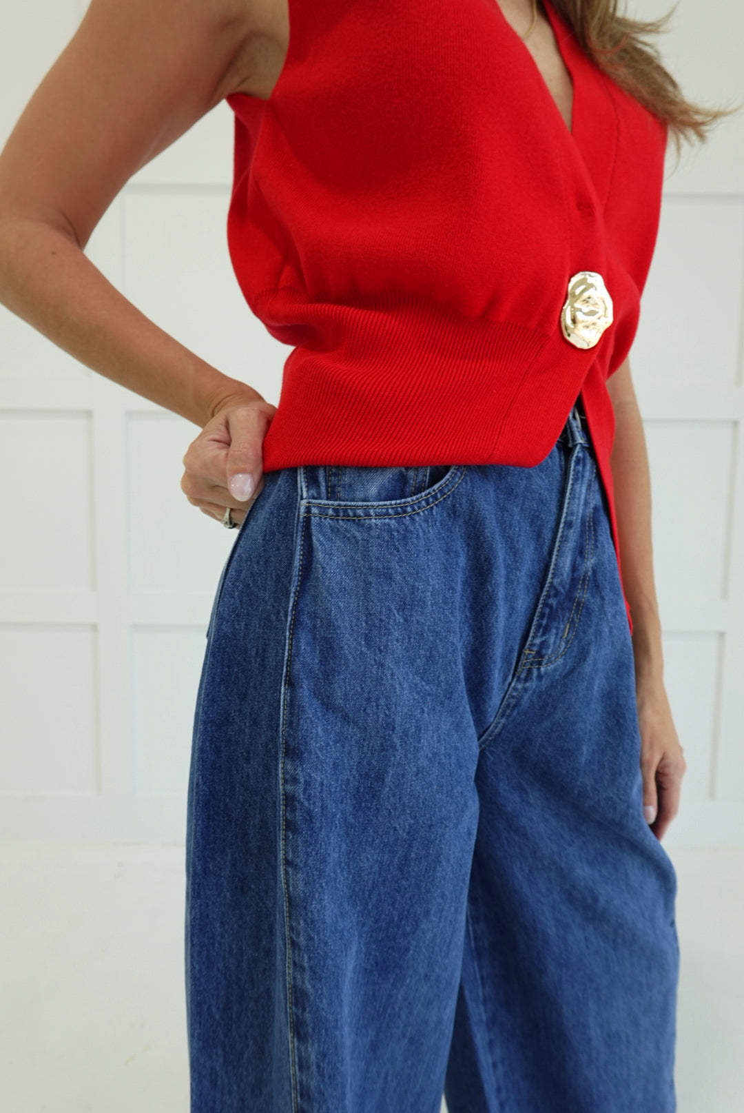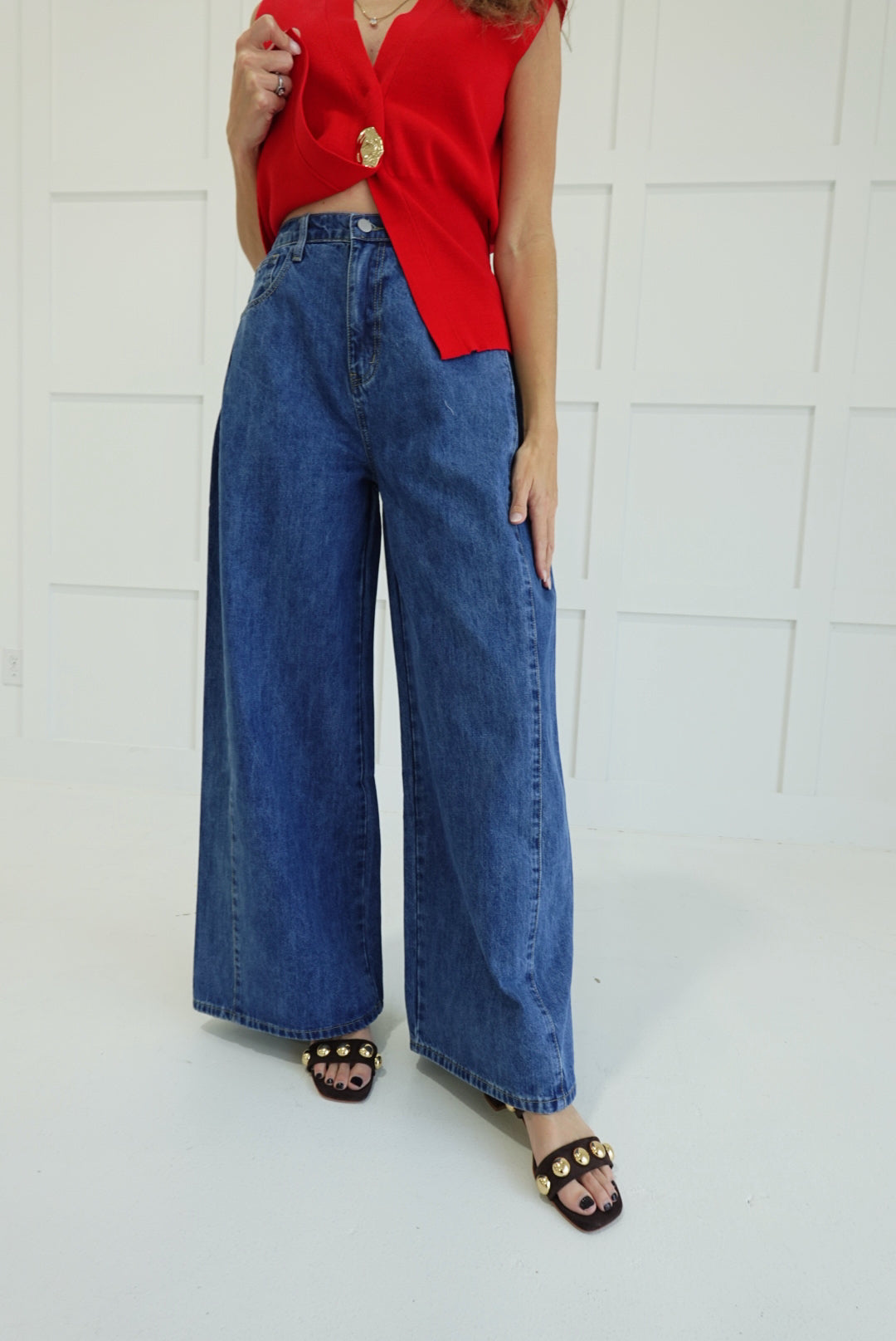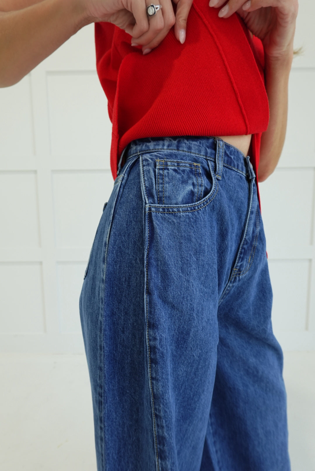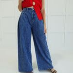 Libra Mid Rise Jeans deliver bold silhouette with architectural side pleats that command attention. The mid-rise cut sits perfectly at the hip, while wide-leg proportions create an effortlessly powerful stance. Crafted in premium denim, these pants transition seamlessly from editorial moments to everyday confidence. The pleated detailing adds dimension and movement, making them a statement piece that refuses to blend in. Own the room in a style that's unapologetically yours.