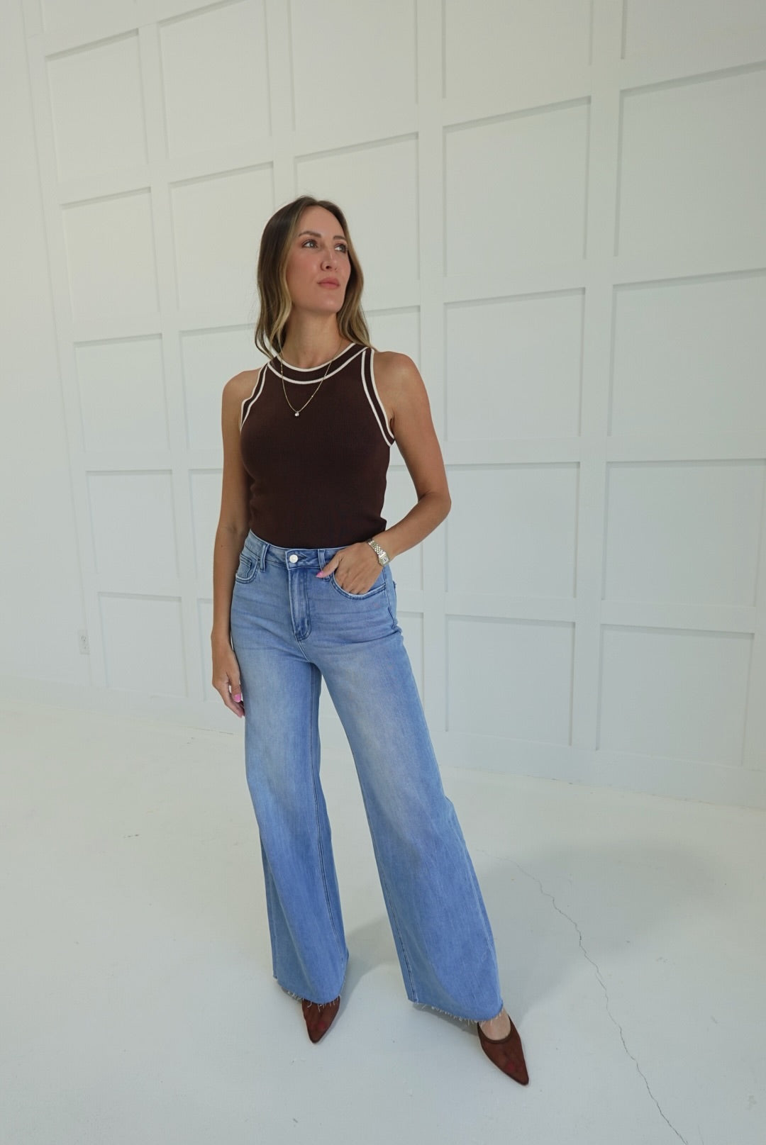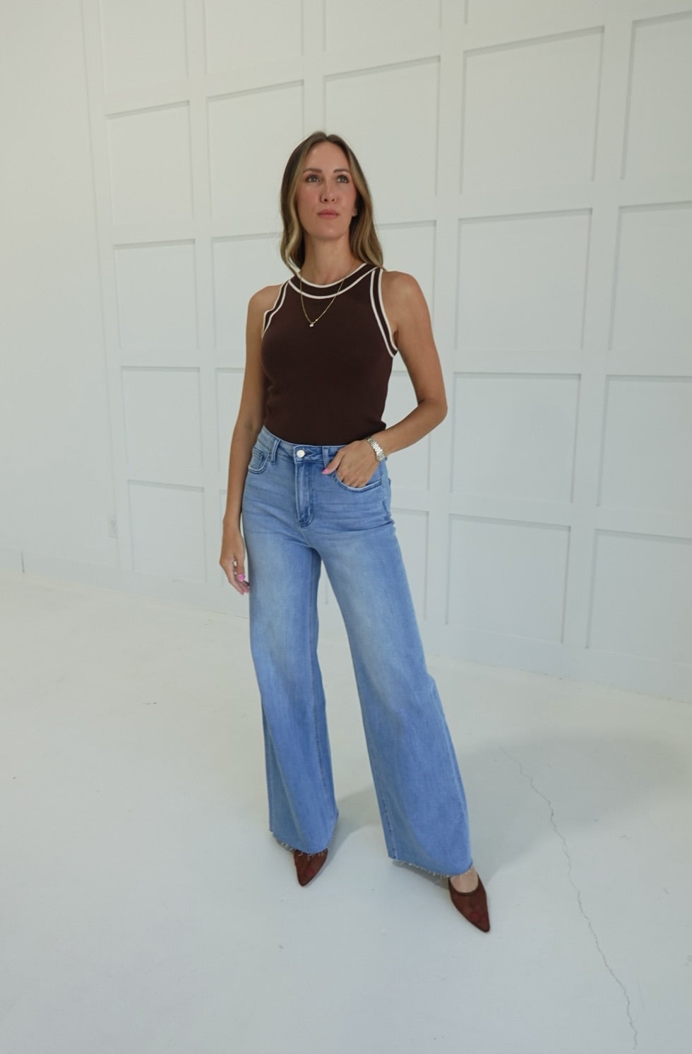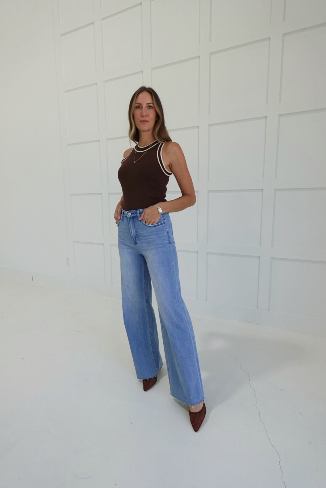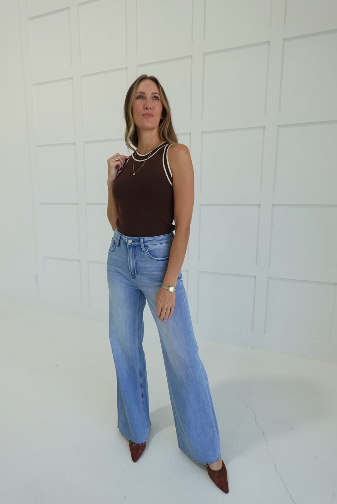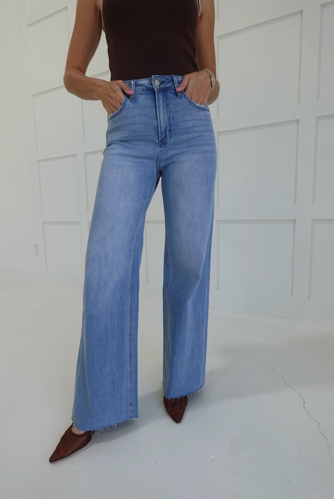 Experience the perfect blend of style and comfort with the Lilibet Classic Jean. Crafted from comfort stretch denim, these jeans feature a super high rise waist that flatters your silhouette. The clean cut raw hem adds a modern edge, while the full-length wide leg design offers ease of movement and a timeless look. Ideal for everyday wear, these jeans support your confidence and style effortlessly.