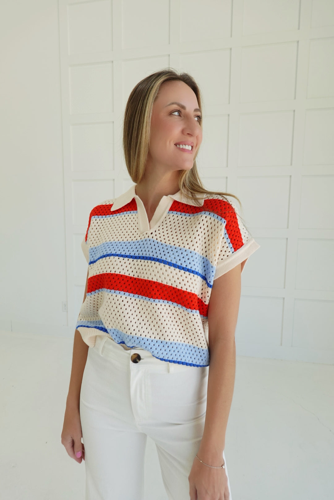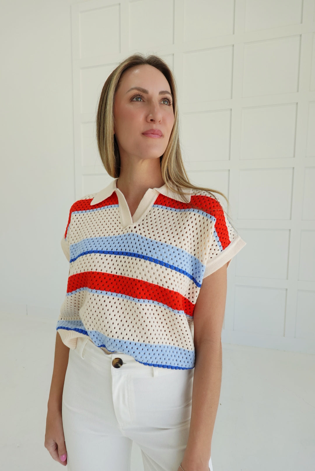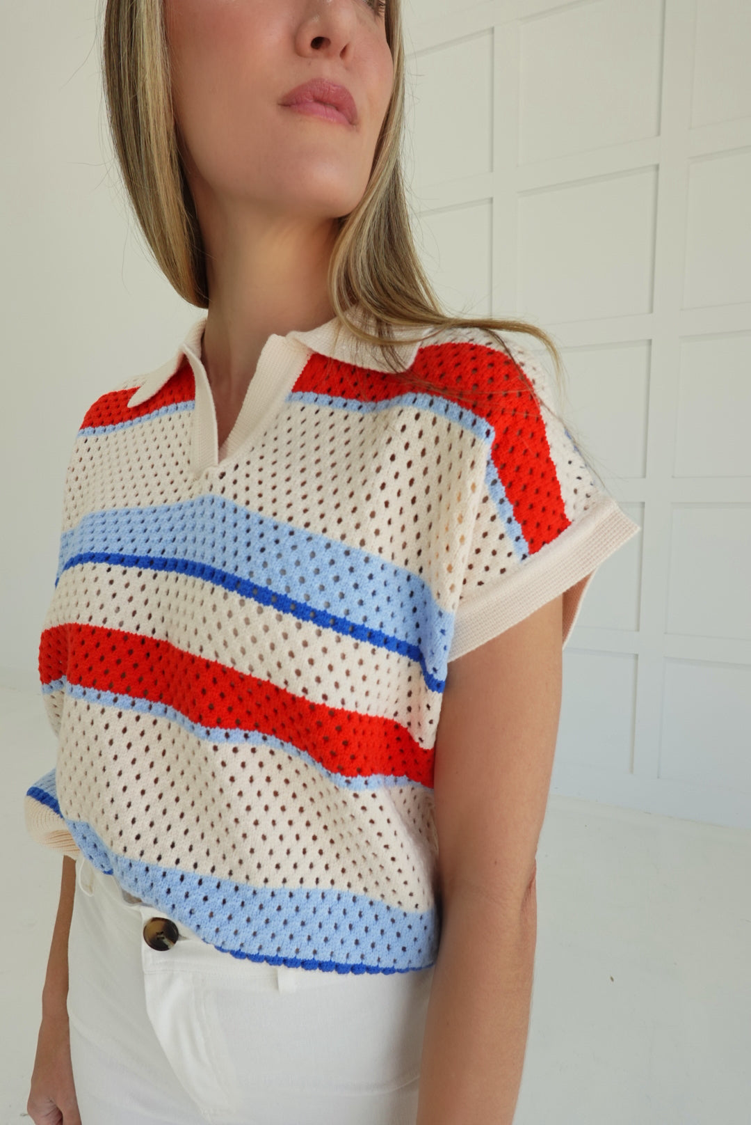 Lionel Knit Top Bold stripes meet refined tailoring in this daring collared knit. Sharp lines and a structured collar command attention, while the soft knit fabric delivers comfort that doesn't compromise on edge. Perfect for layering or standing solo, this piece transforms any outfit into a statement. Versatile enough for the office, fearless enough for the weekend.
