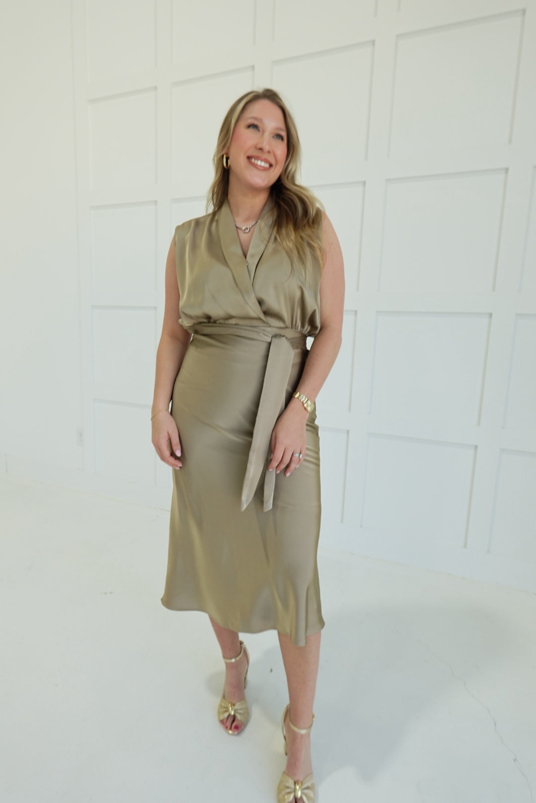- Surplice Waist Tie Midi Dress