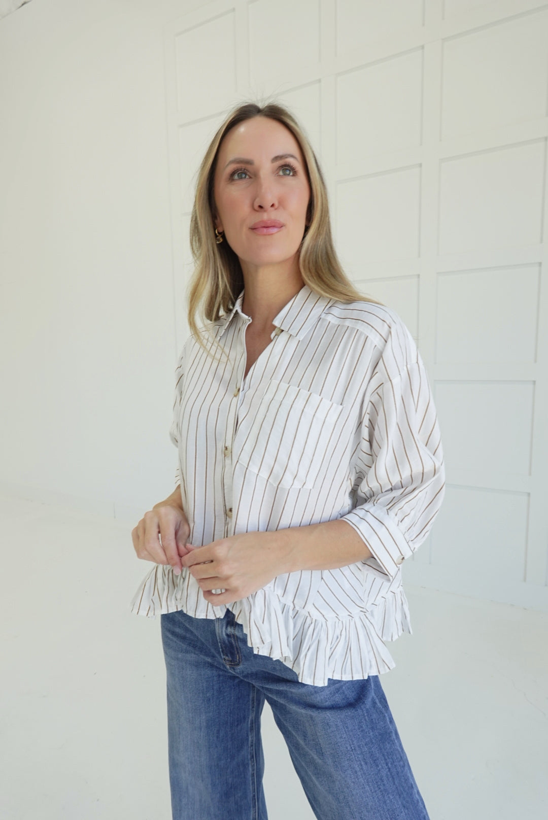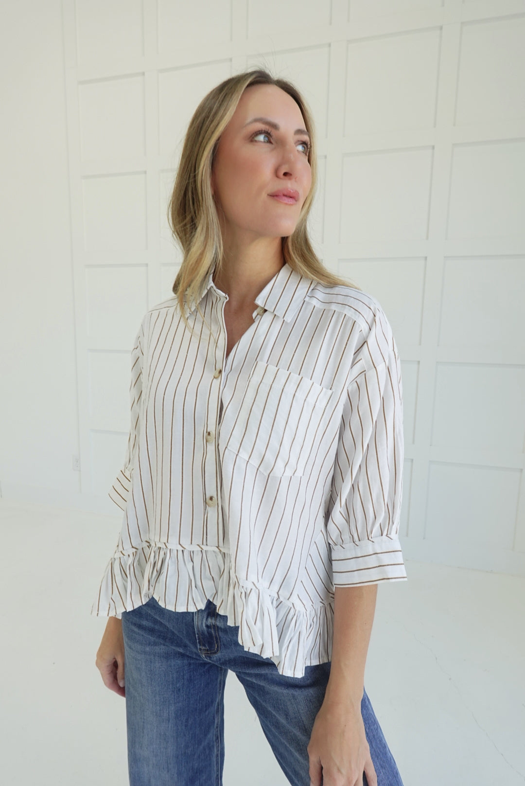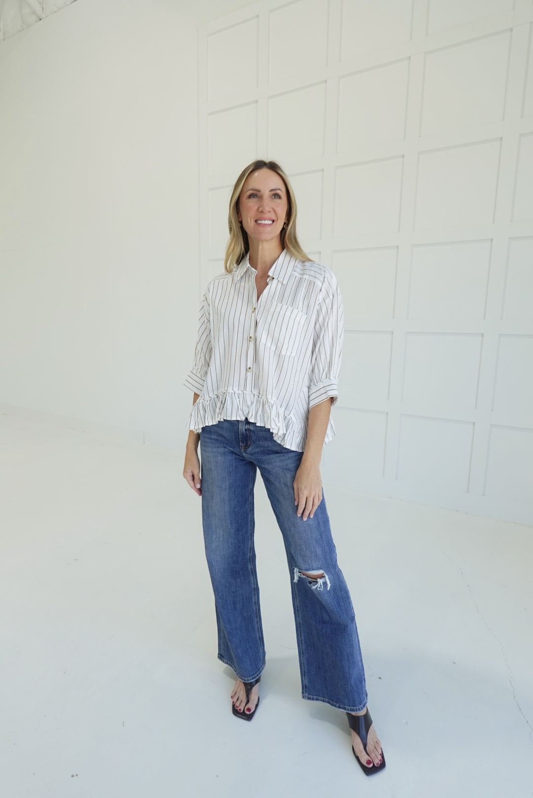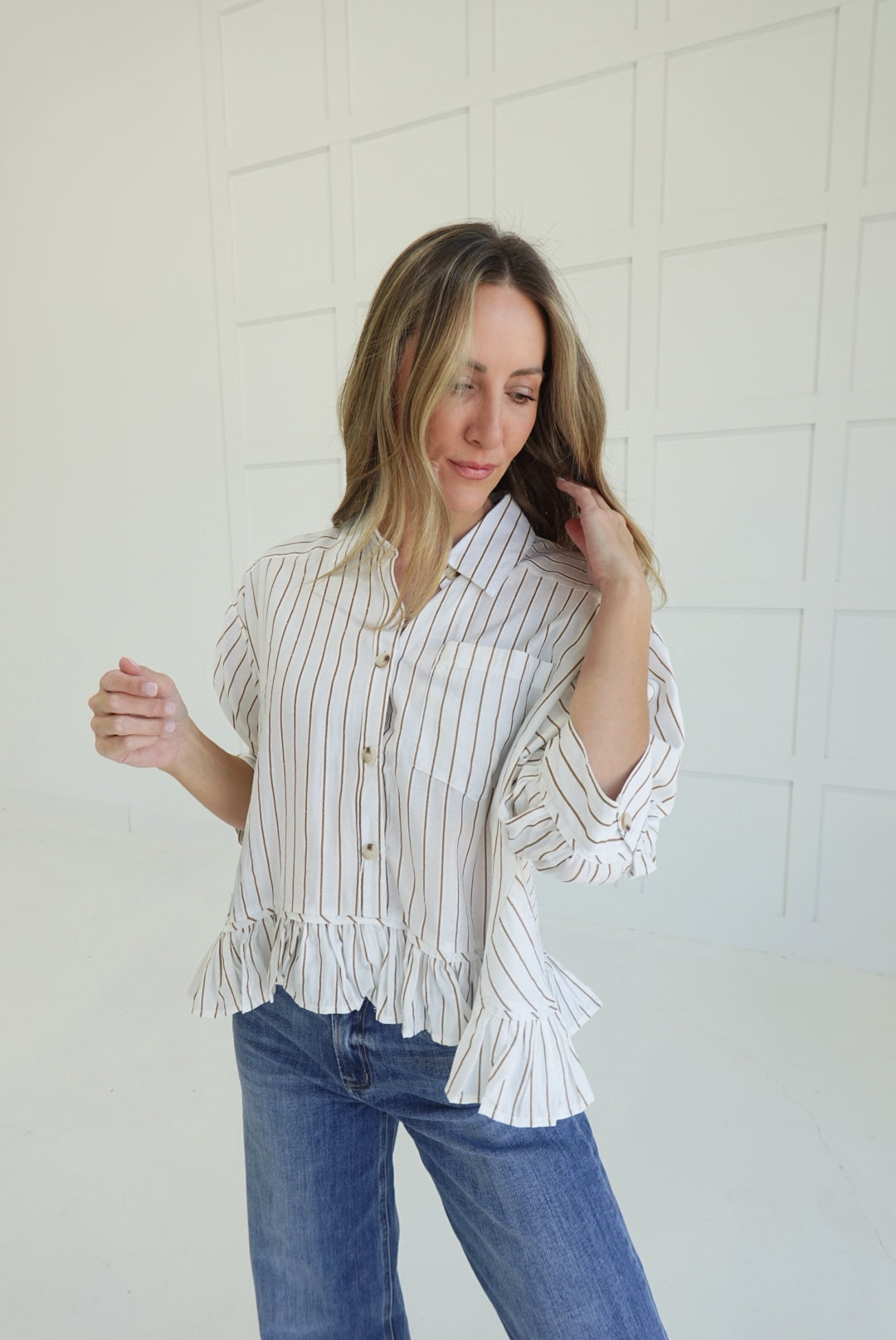 Dare to stand out in the Louise Ruffle Top, a cropped shirt that commands attention with its playful ruffled hem and flattering elbow sleeves. Perfect for those who refuse to blend in, this piece layers effortlessly over basics or shines solo for an instant style statement. The cropped silhouette pairs beautifully with high-waisted bottoms, while the delicate ruffle detail adds movement and personality. Versatile enough for casual outings yet bold enough to turn heads—this is the top that says you're not afraid to take fashion risks.