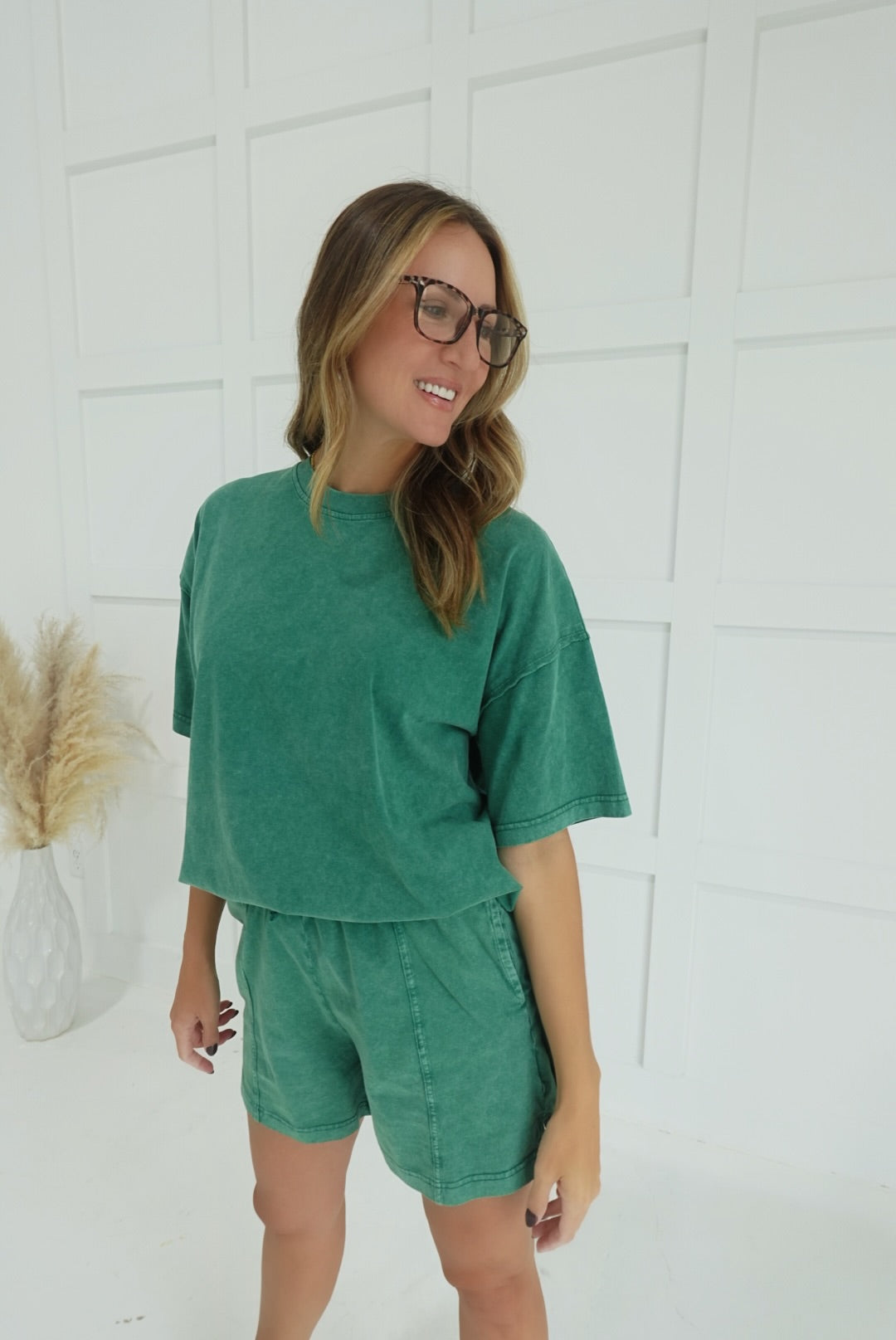 The Lounge Like Me Set features a Mineral Washed Cotton Oversized Slit Tee designed for ultimate comfort and ease. Made from soft, breathable cotton with a relaxed, oversized fit, this tee allows for effortless movement and all-day wear. The subtle side slits add a stylish touch while enhancing comfort. Perfect for lounging or casual outings, this set supports your need for comfort without sacrificing style.