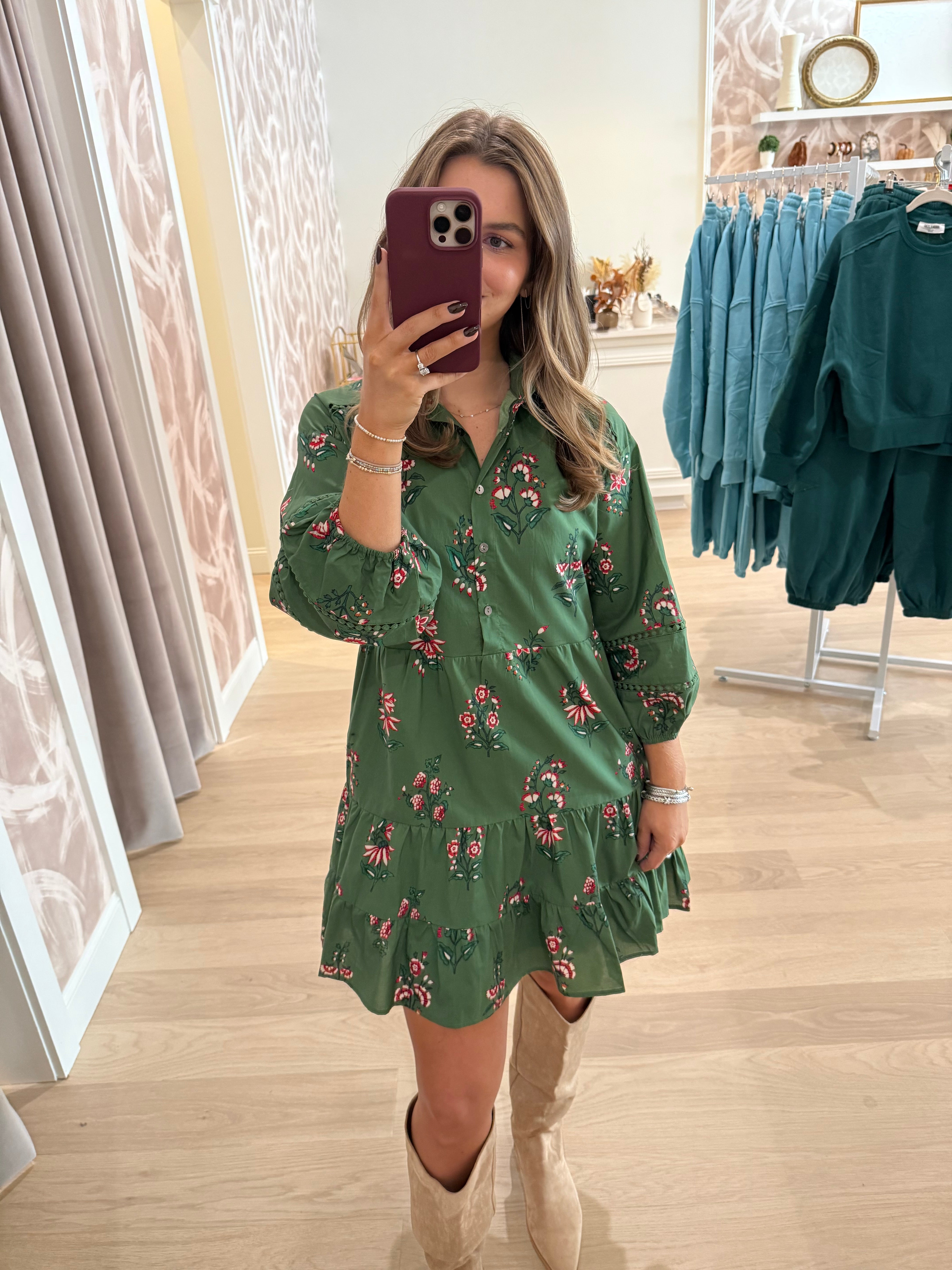 This Love In The Details Mini Dress combines elegance with comfort, featuring a delicate floral print and a flattering 3/4 sleeve tiered design. Its collared neckline and partial button front add subtle sophistication, while lace insert trims at the shoulders and sleeves provide charming accents. Lightweight and fully lined, this woven dress is non-sheer and includes convenient side pockets, making it as practical as it is stylish. Perfect for days when you want to feel both confident and effortlessly graceful.