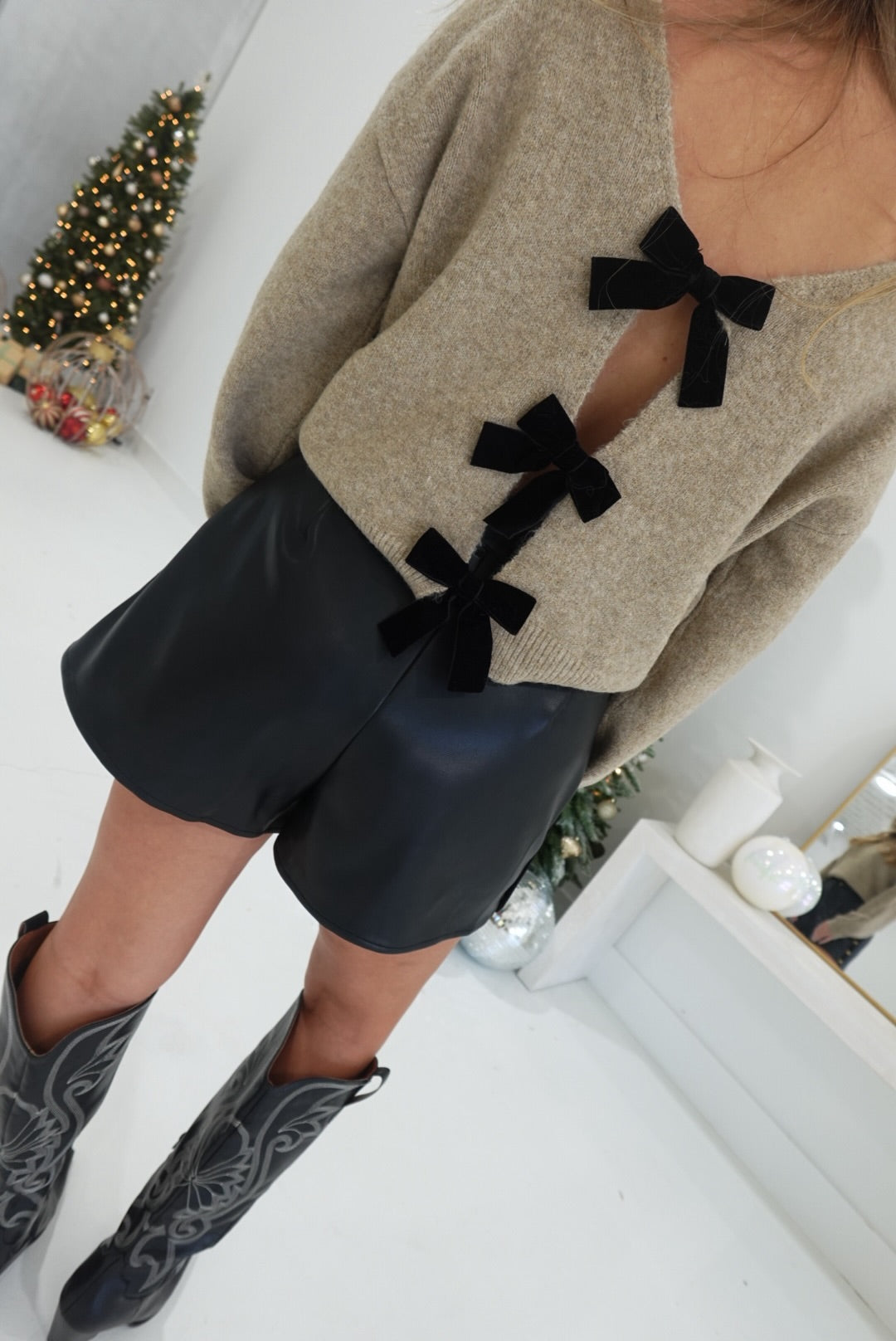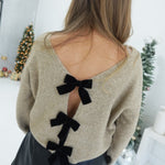 Experience cozy elegance with the Love On The Run Top, featuring a soft knit fabric and a charming back velvet tie detail. This pullover sweater offers comfortable warmth while adding a subtle, stylish touch to your outfit. Perfect for layering or wearing on its own, it effortlessly combines comfort and sophistication for your everyday wardrobe.