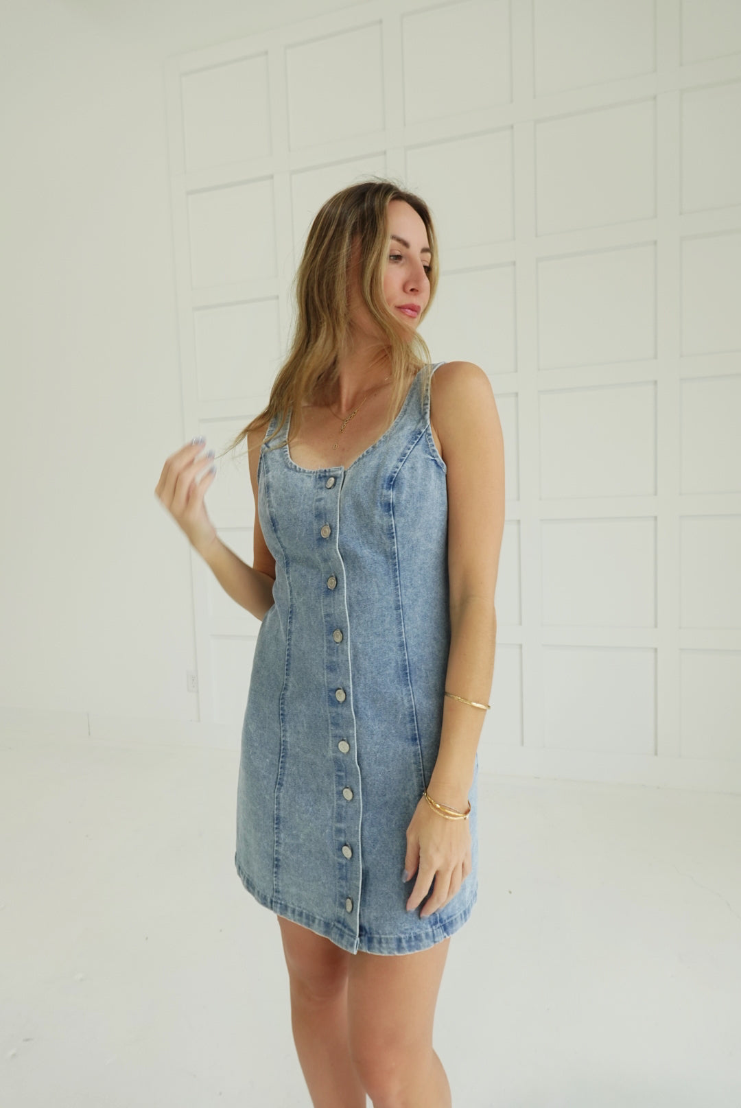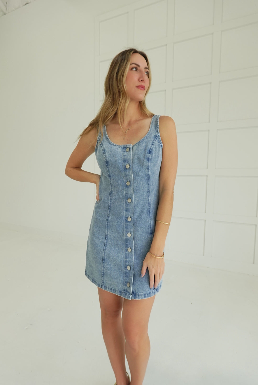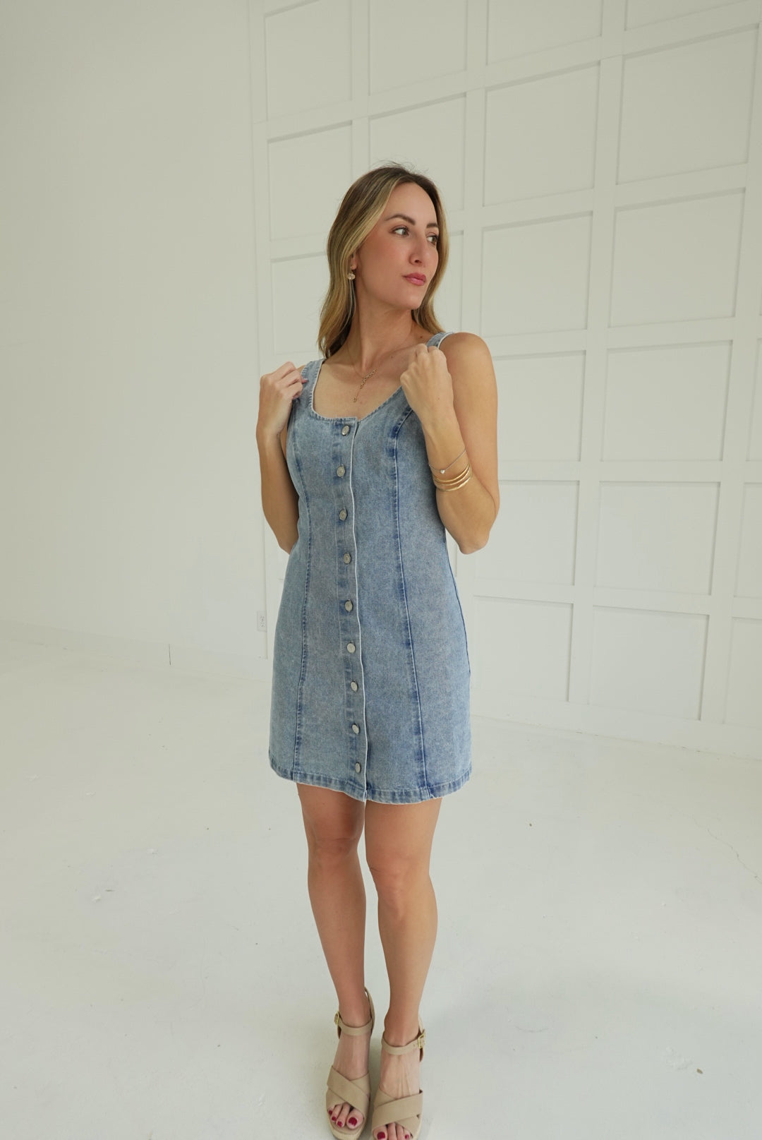 - Button Down Denim Mini Dress
