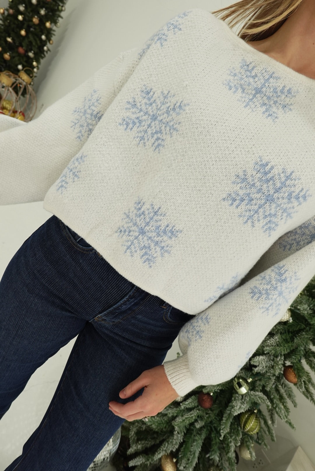 Embrace winter's boldest statement with the Lumi Sweater. This oversized boat neck design channels arctic elegance with its striking snowflake pattern, perfect for those who refuse to blend in. The relaxed silhouette drapes effortlessly over layers, delivering cozy comfort without compromise. Crafted for the fearless fashionista who turns cold-weather dressing into an art form. Make every season feel like an adventure.