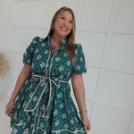 The Madeline Mini Dress features a charming floral print with a button-down front and a playful bottom tier ruffle that adds a touch of movement. Its short puff sleeves offer a delicate, feminine silhouette, while subtle piping details enhance the overall design. Perfect for warm days, this dress balances comfort and style effortlessly.