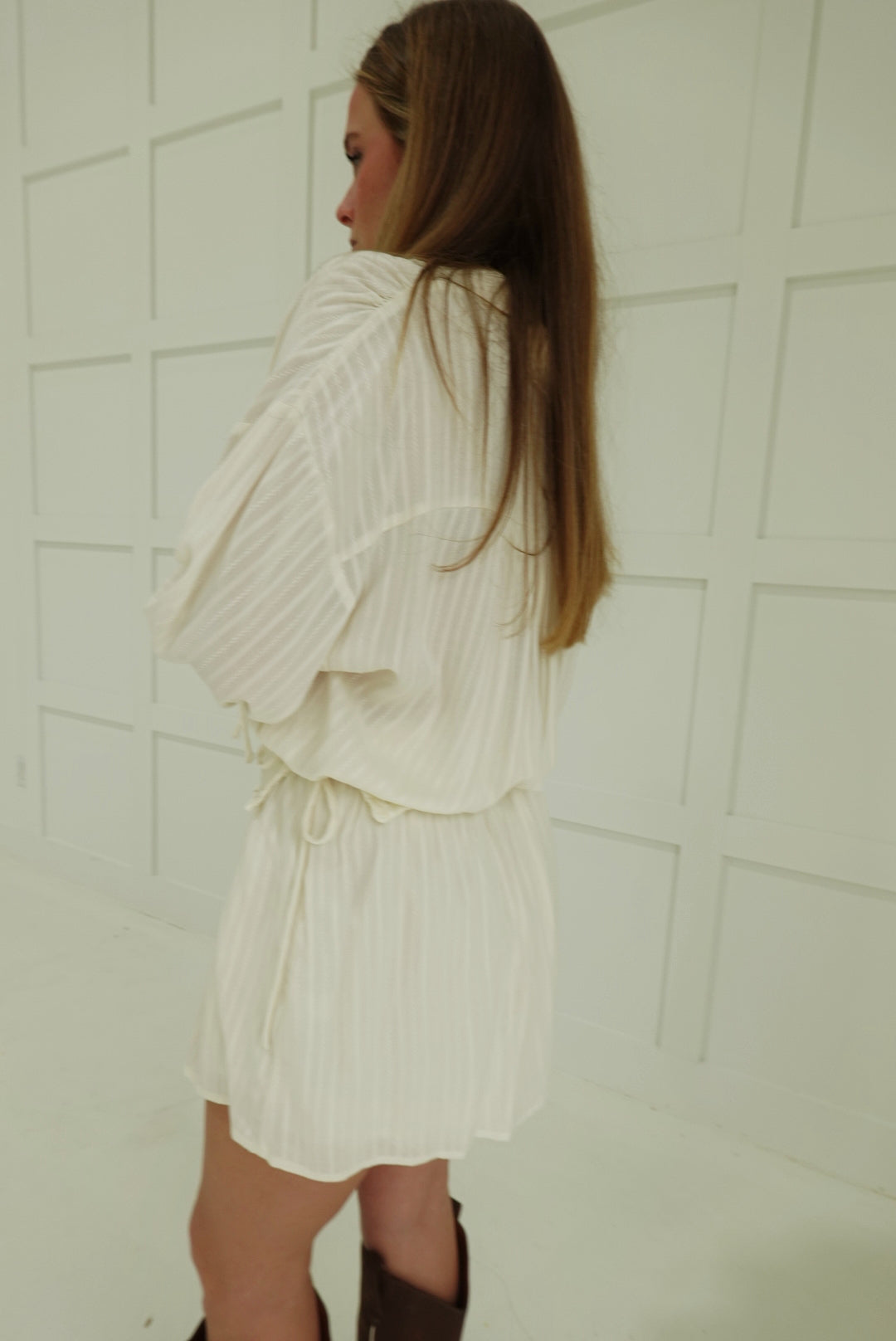 Madge Shirt Dress Embrace bold confidence in this low-waist shirt dress—a fearless take on timeless tailoring. Crafted with a daring silhouette that sits low on the hips, it channels effortless edge while maintaining the polished structure of a classic button-up. Layer it open over a fitted tee, cinch the waist with a statement belt, or wear it solo for an unapologetic statement. The relaxed fit through the shoulders and chest balances the provocative cut, making it versatile enough for styled-down weekends or dressed-up evenings. A wardrobe essential for those who refuse to play it safe.