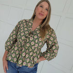 Embrace effortless style with the Magdala Peplum Top, featuring a charming flower print and a flattering bow tie detail. Its peplum silhouette accentuates your waist while providing a comfortable and feminine fit. Perfect for adding a touch of elegance to your everyday wardrobe or dressing up for special occasions. This top combines delicate design with easy wearability to support your confidence and style throughout the day.
