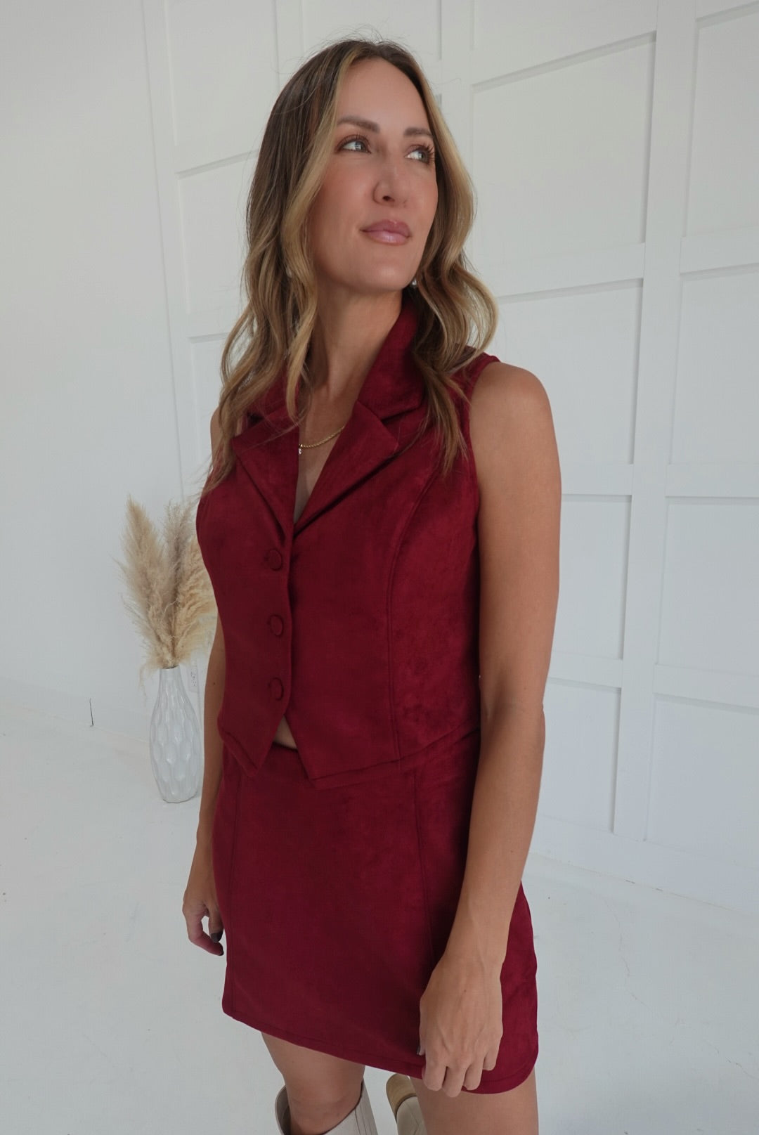 This Main Street Mini Skirt Set features a soft faux suede vest paired with a matching mini skirt, creating a coordinated and stylish look. The lightweight vest offers versatile layering, while the mini skirt adds a confident, youthful touch to your outfit. Perfect for casual outings or dressing up with accessories, this set provides both comfort and a polished appearance.