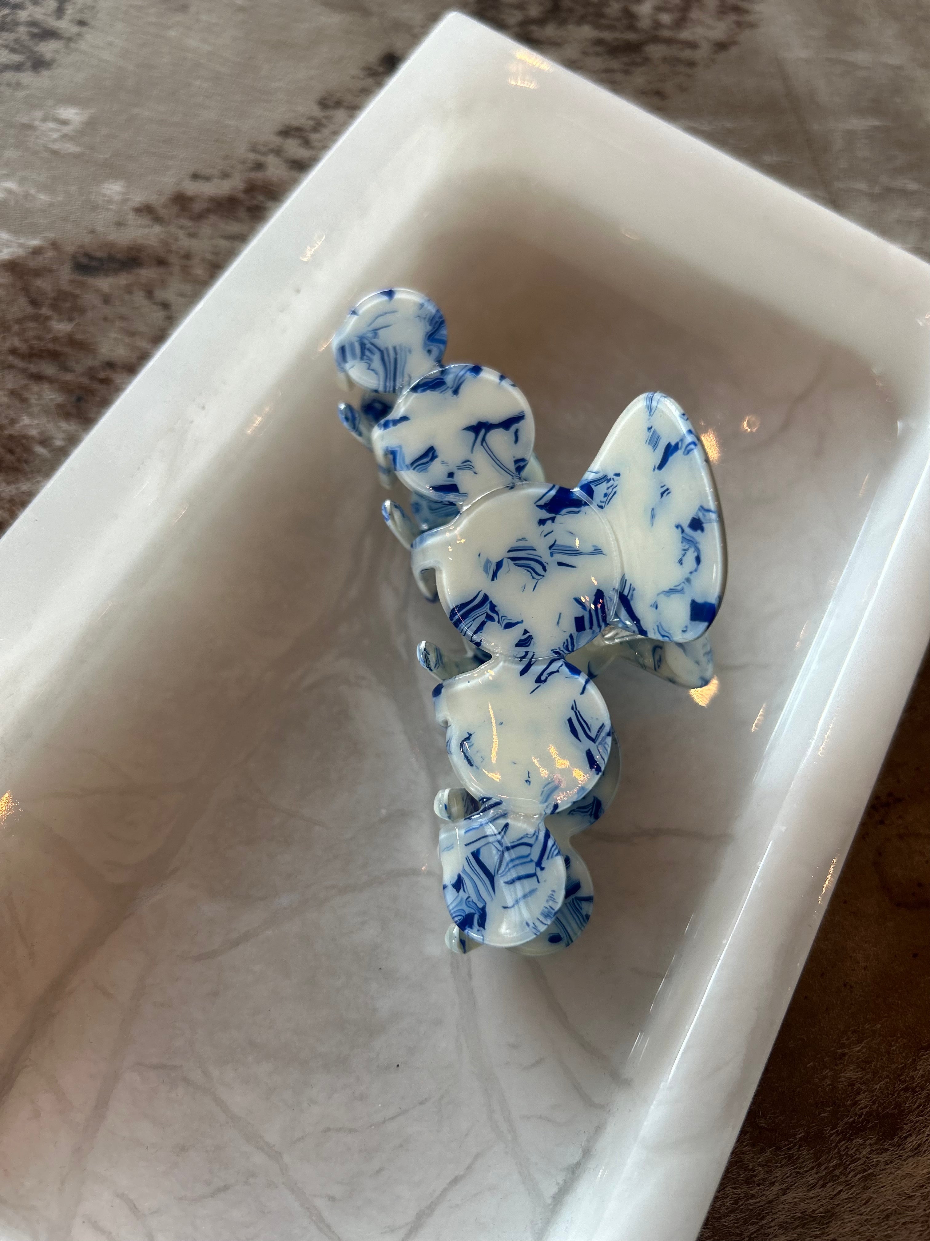 This Marble Pattern Hair Claw combines stylish design with practical function. Crafted from durable porcelain, its smooth finish gently secures your hair without damage or discomfort. The elegant marble pattern adds a chic touch to any look, making it perfect for everyday wear or special occasions. Whether you need to keep your hair tidy or enhance your style, this hair claw offers reliable hold with a comfortable feel.
