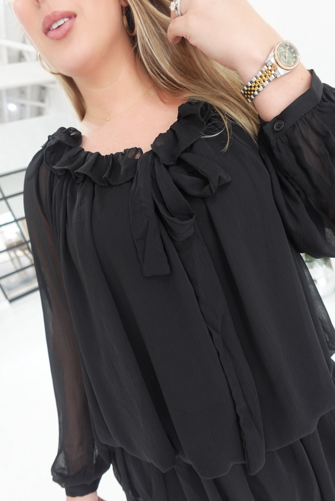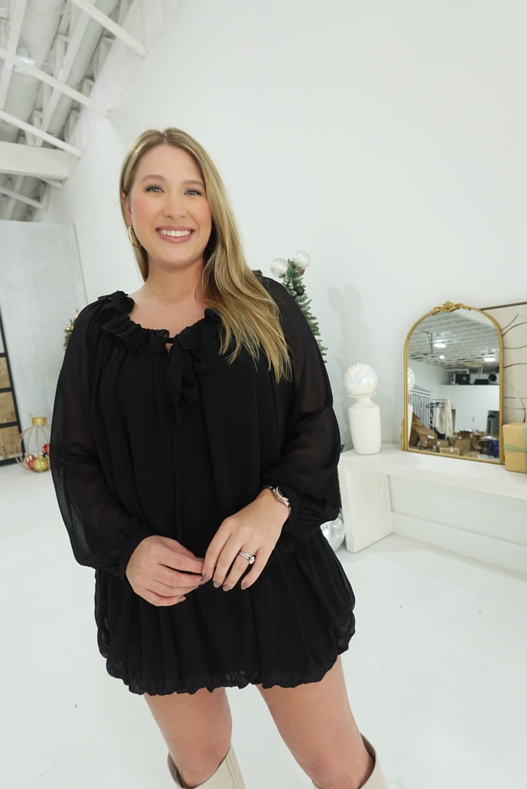 The Margie Mini Dress in Black features a charming bubble hem and a tiered design that adds playful movement and flattering volume. Its lightweight fabric ensures comfort, while the stylish silhouette suits a variety of occasions. Elevate your wardrobe with this versatile dress that combines ease with elegant detail.