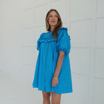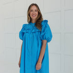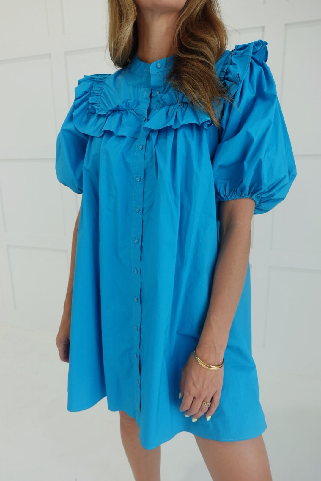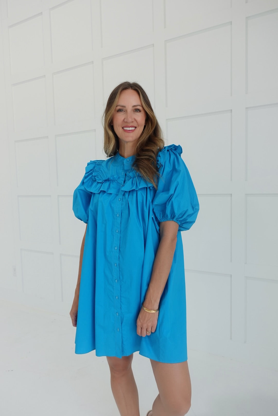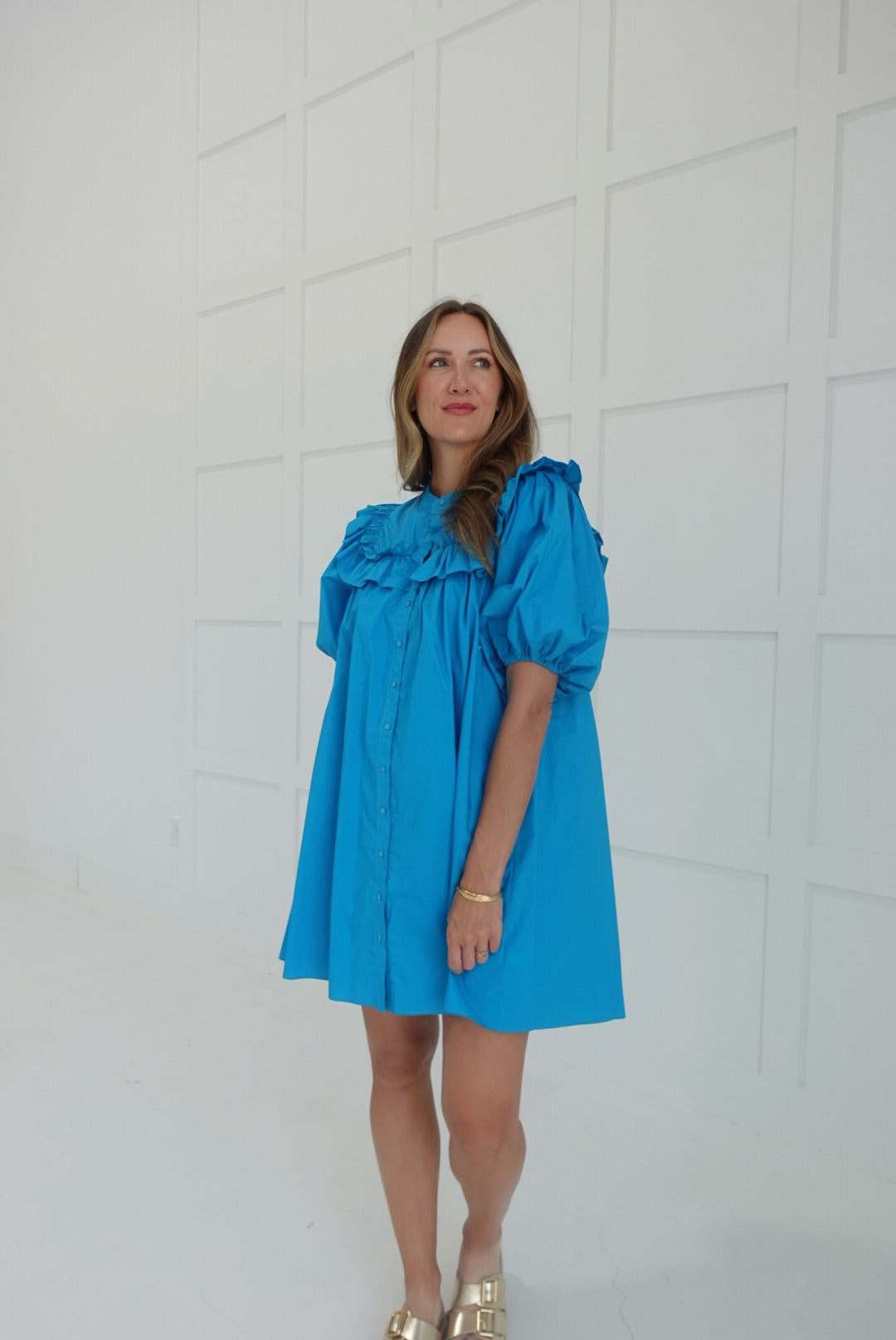 - Puff Sleeve Mini Dress With Mandarin Collar + Ruffle Detail