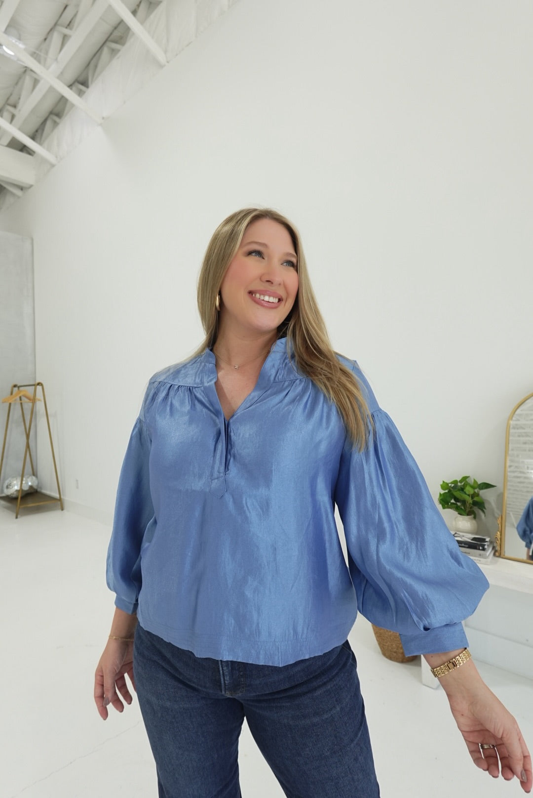 This Match-Made Blouse features a deep neckline and voluminous sleeves, combining elegance with a modern silhouette. Its flowing design offers comfort and movement, making it a versatile choice for both casual and dressier occasions. The bold color adds a confident touch to your wardrobe, while the stylish sleeves enhance your look with a flattering, feminine flair. Perfect for those who appreciate chic details without sacrificing ease and comfort.