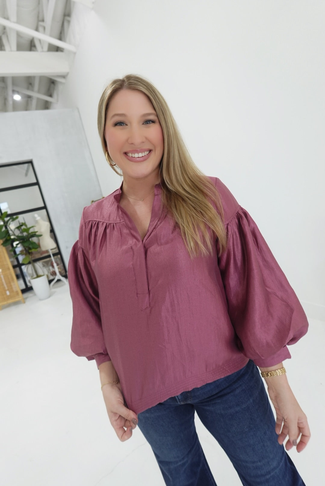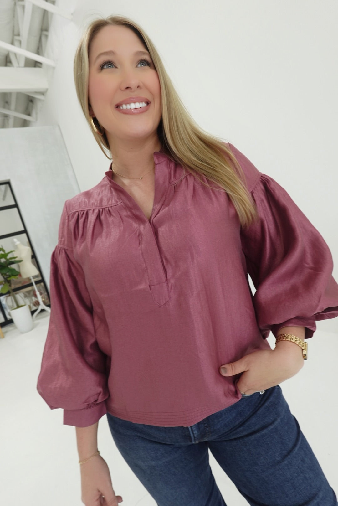 - Voluminous Sleeve Blouse With Deep Neckline