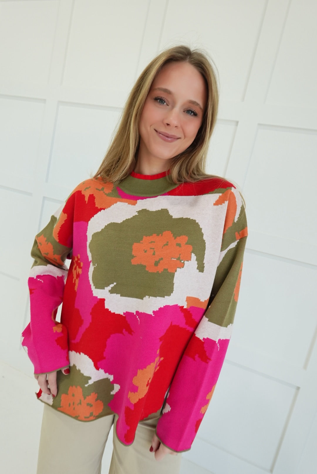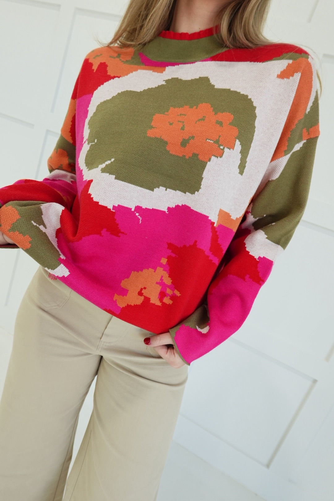 The Matron Floral Sweater combines comfort and style with its relaxed drop shoulder design and bold floral pattern. Made to provide a cozy fit, this sweater effortlessly brightens your wardrobe while allowing ease of movement. Perfect for layering on cool days, its eye-catching print adds a touch of elegance to casual looks. Embrace a comfortable yet fashionable choice that supports your everyday needs.