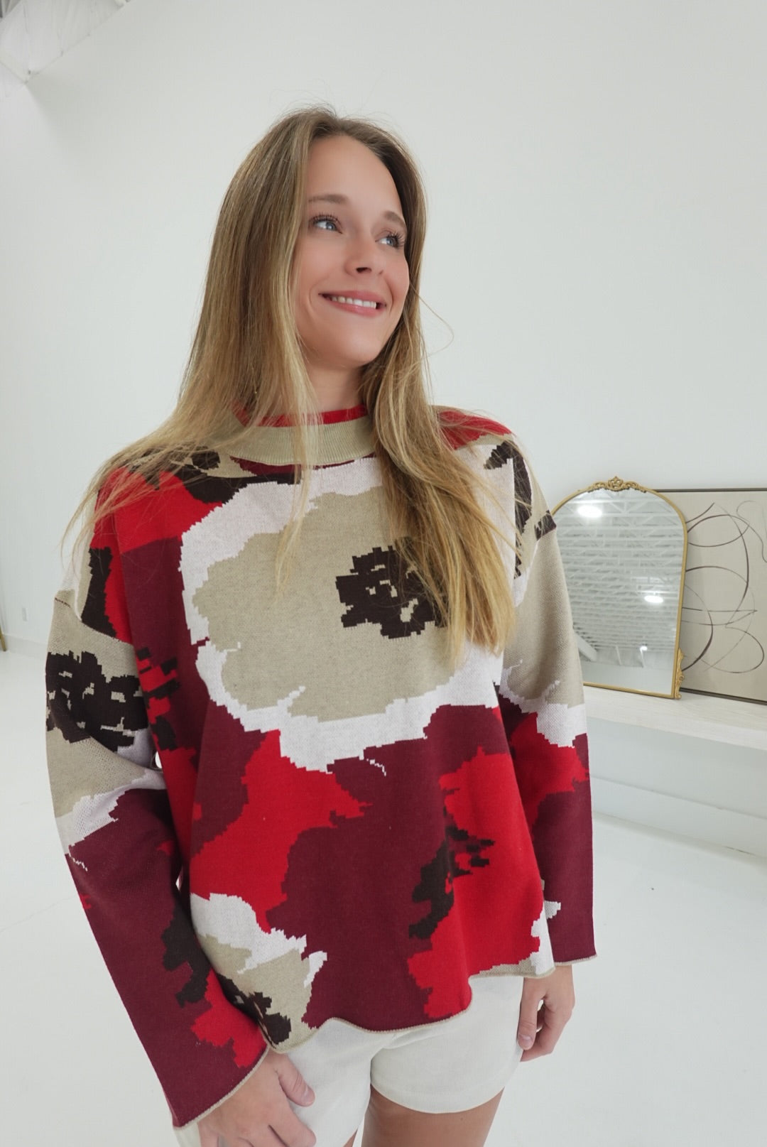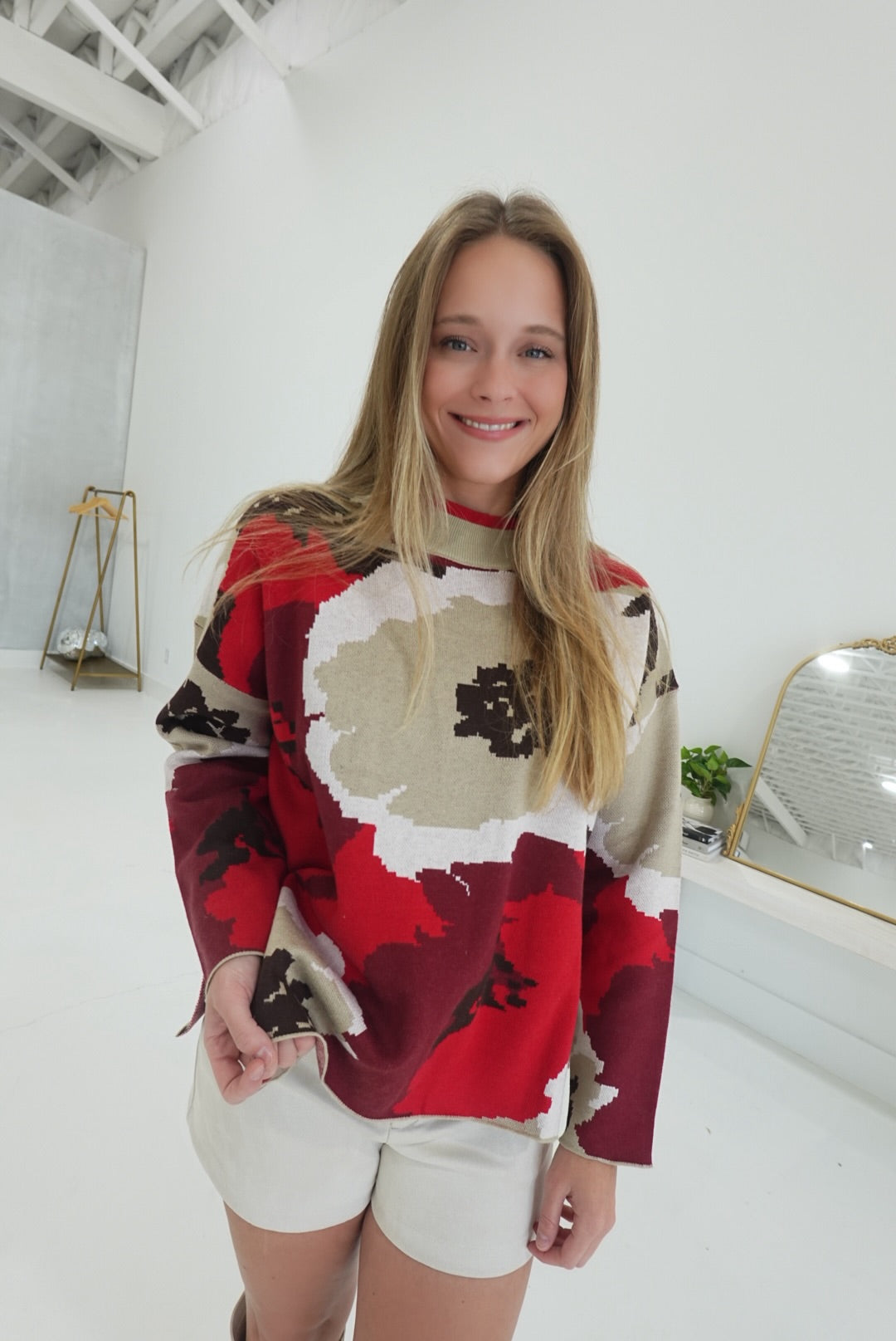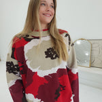The Matron Floral Sweater combines comfort and style with its relaxed drop shoulder design and bold floral pattern. Made to provide a cozy fit, this sweater effortlessly brightens your wardrobe while allowing ease of movement. Perfect for layering on cool days, its eye-catching print adds a touch of elegance to casual looks. Embrace a comfortable yet fashionable choice that supports your everyday needs.