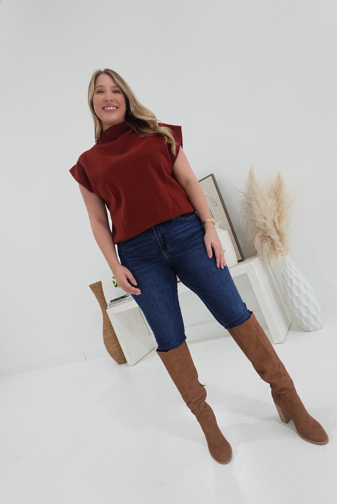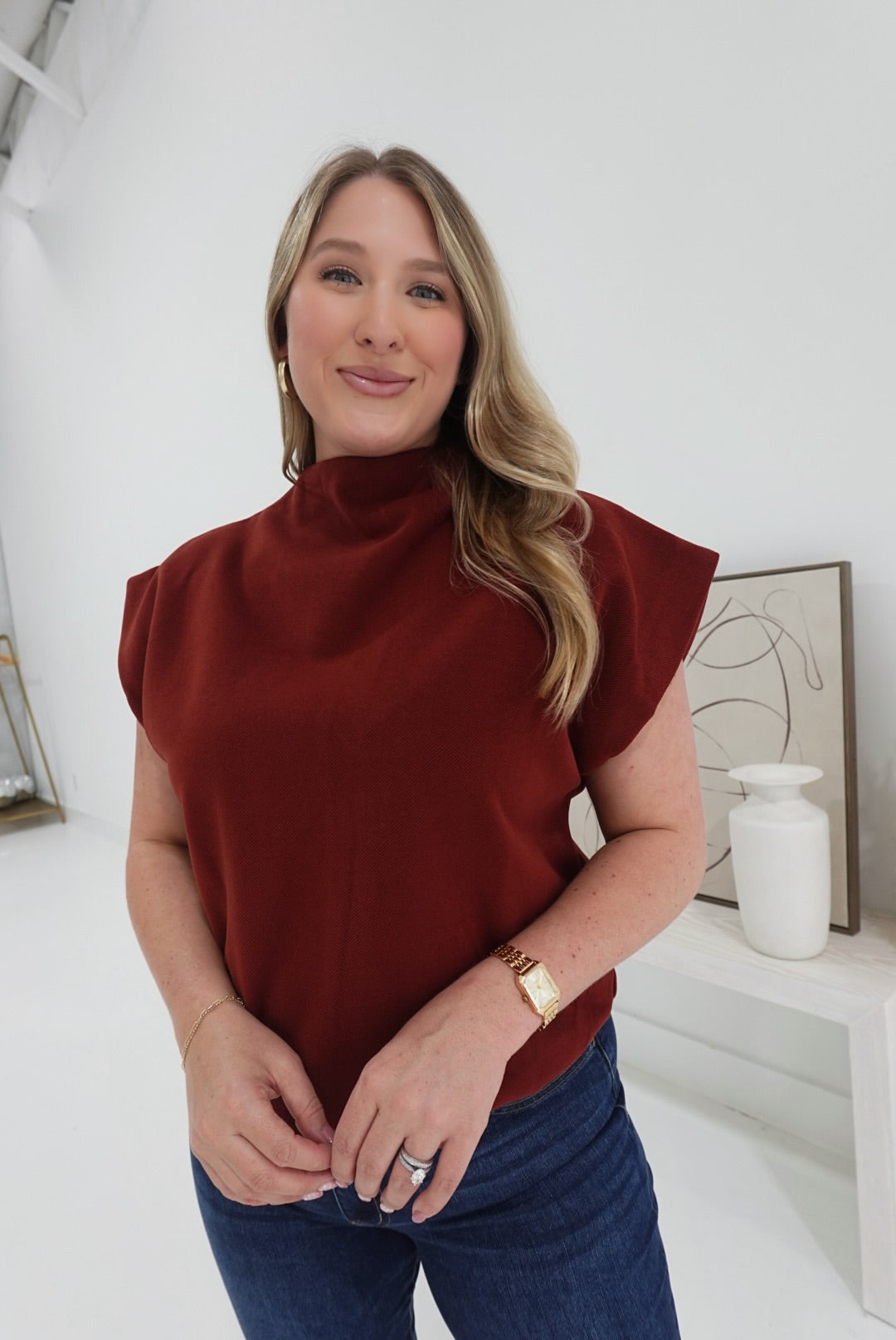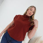 The Mayford Top offers a relaxed, oversized fit combined with a modern sleeveless design and a stylish mock neck. Crafted for comfort and ease, this top is perfect for layering or wearing on its own, providing a versatile addition to your wardrobe that gently enhances your natural style. Its breathable fabric and roomy silhouette ensure freedom of movement while maintaining a polished look.
