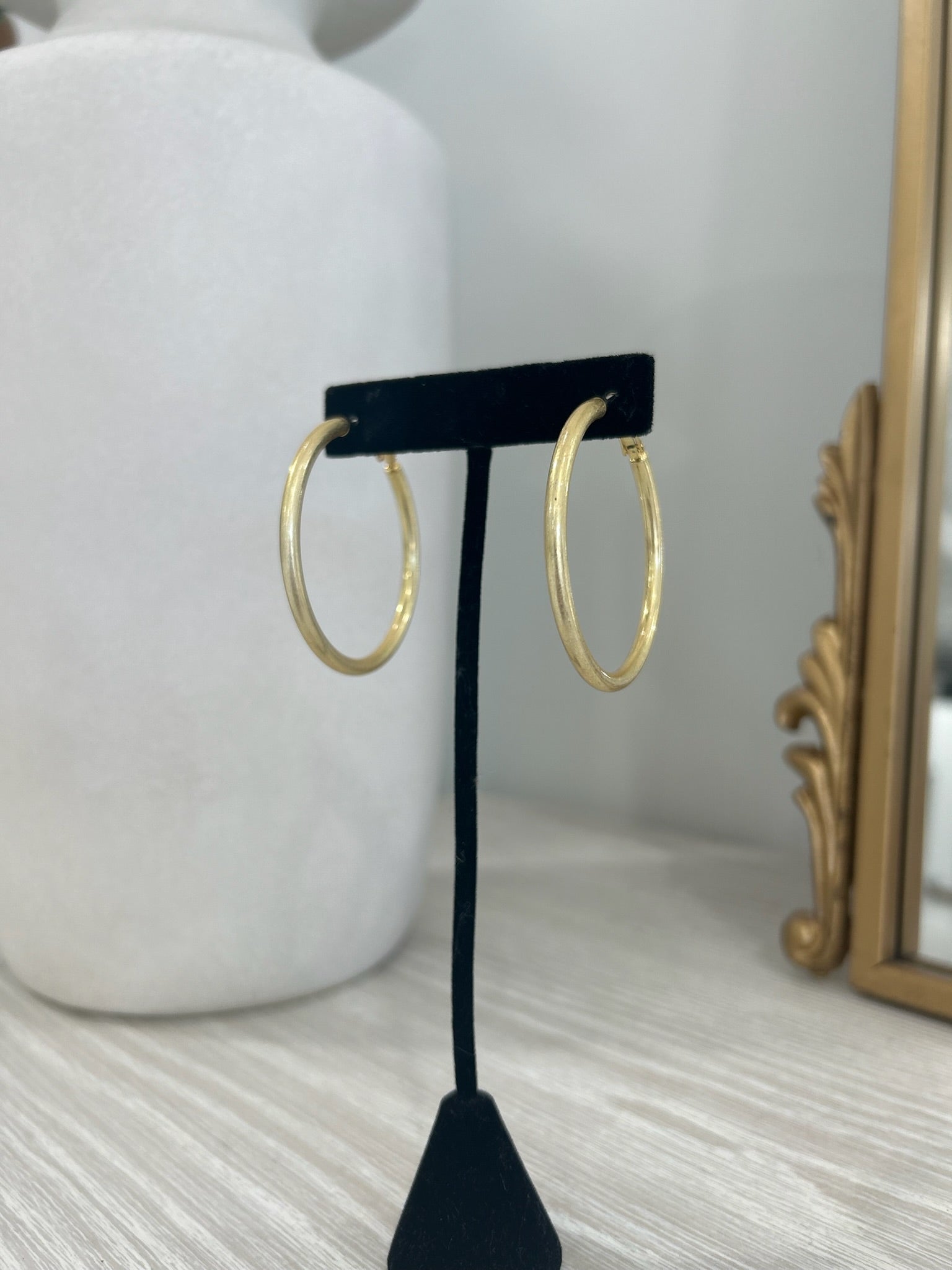 Dare to make a statement with these striking 5cm vintage gold tube hoops. Crafted with a brushed finish that catches the light beautifully, these medium-sized classics deliver timeless elegance with an edge. The substantial yet lightweight design ensures all-day comfort, while the rich gold tone adds warmth to any complexion. Perfect for those who appreciate bold, understated sophistication—these hoops command attention without shouting about it.