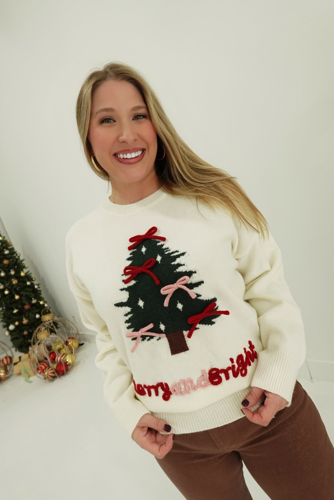 - Merry + Bright, Christmas Tree With Bow Detailing