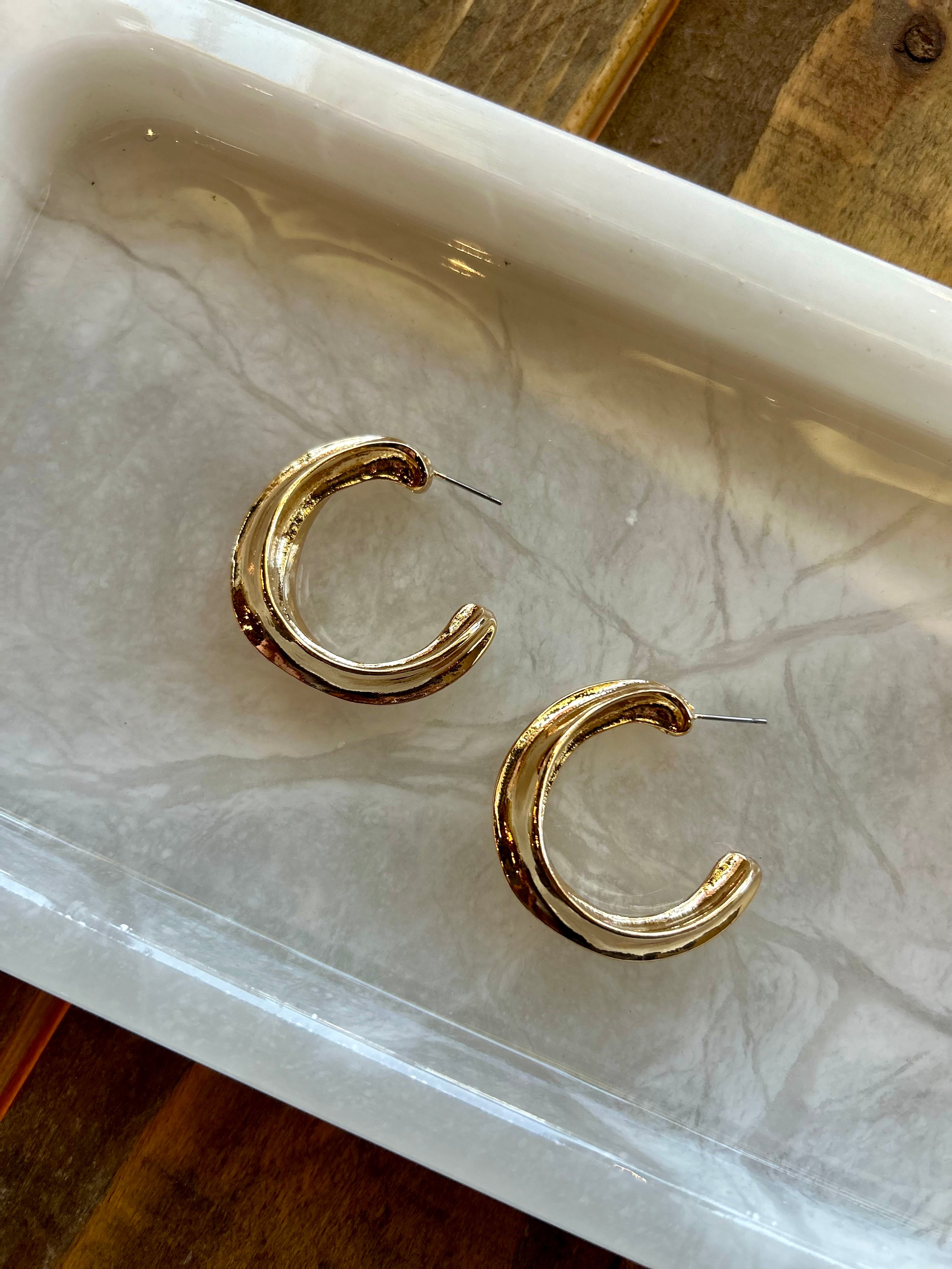 Add a touch of playful elegance to any outfit with these Metal Gold Hoops. These hoops, made of high-quality metal in a stunning gold finish, will elevate your style and turn heads. Perfect for any occasion, they will add a touch of fun and sophistication to your look.