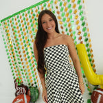 Dare to be noticed in our Mikey Checkered Romper Dress. This provocative strapless number combines edgy checkered denim with seductive pleats in a mini silhouette that shows off your legs. Rock this bold piece for gameday and stand out in the crowd – it's not for the faint-hearted. Command attention and embrace your fearless style.