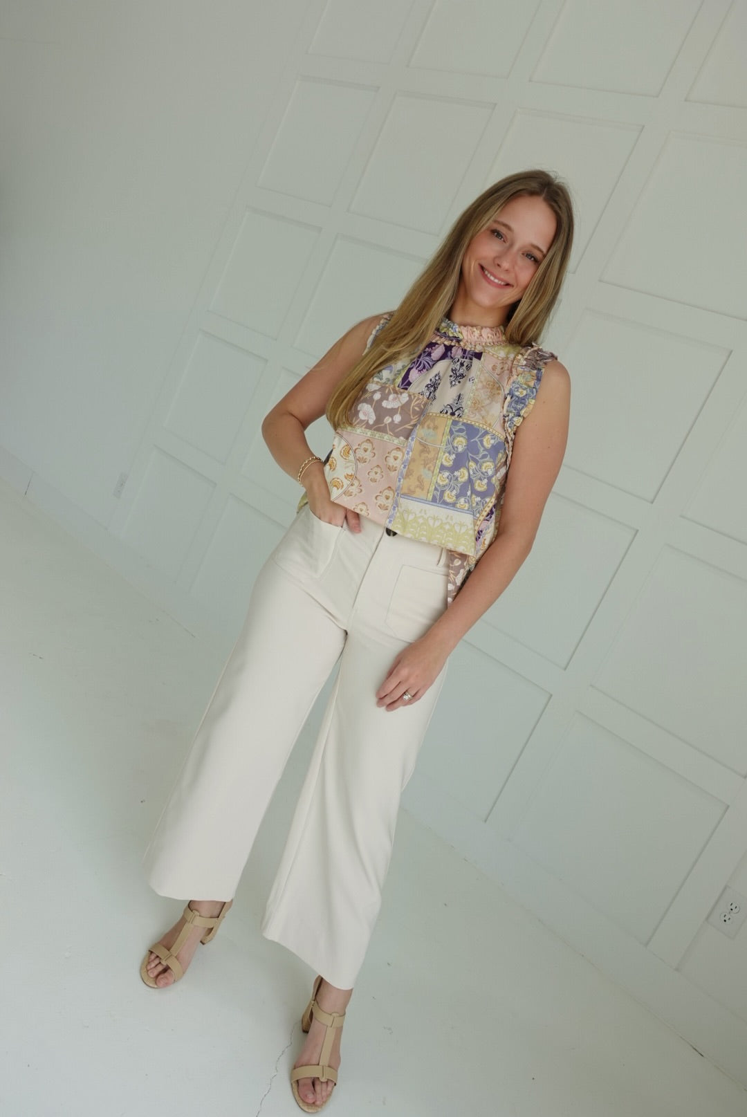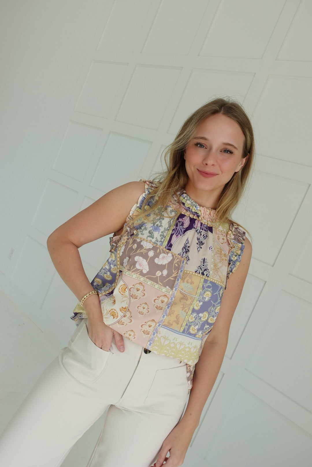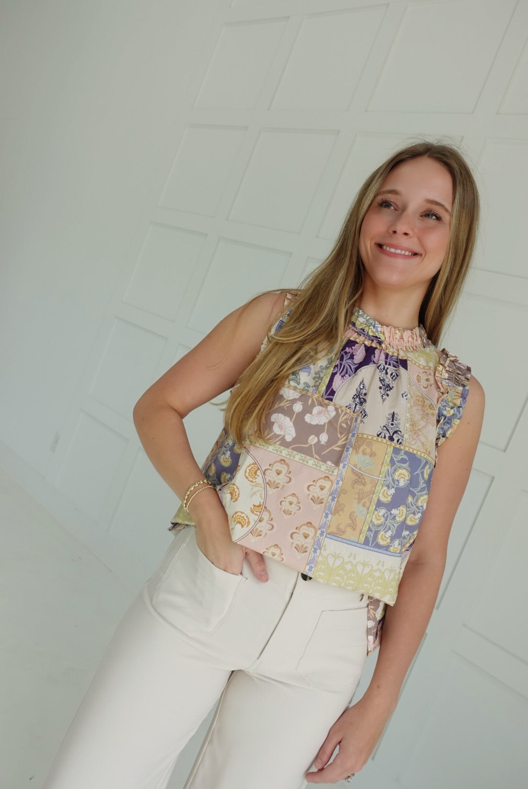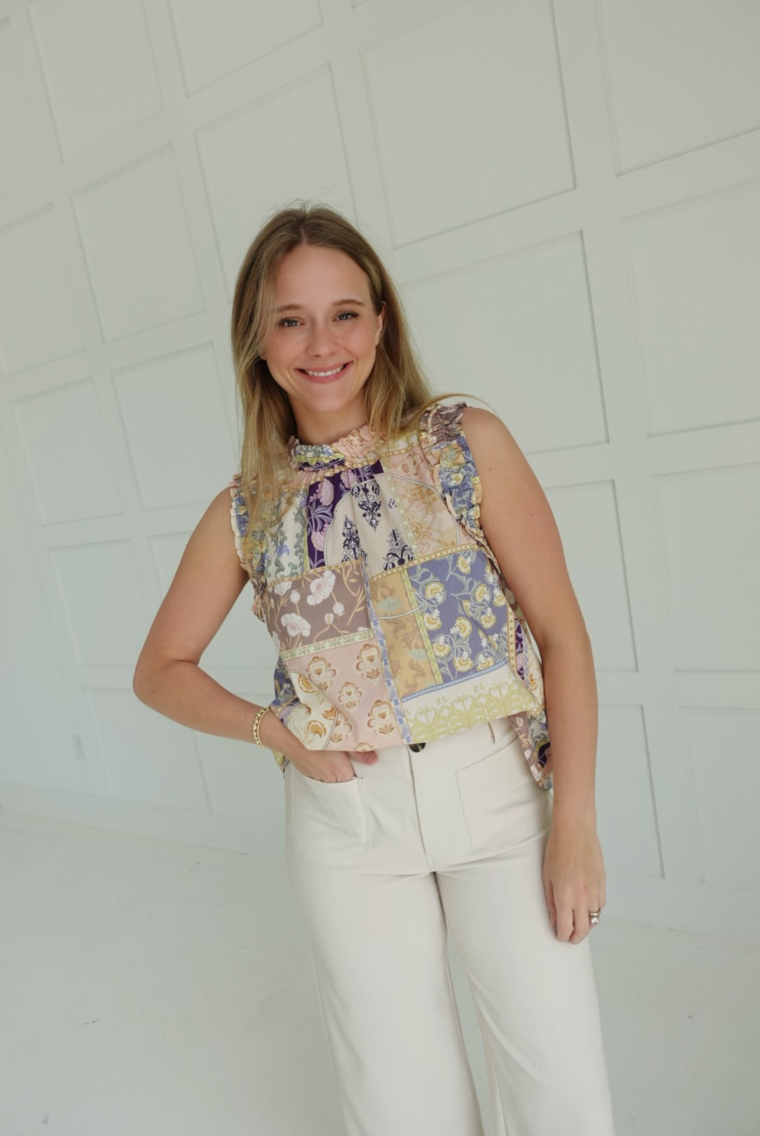 Introducing the Mildred Blouse - a stylish statement piece that is perfect for any occasion. With its playful ruffled neckline and hidden button keyhole closure, this sleeveless pullover top adds a touch of whimsy to any outfit. Made with a lightweight, non-sheer woven fabric, this blouse is both comfortable and chic. Don't miss out on this unique wardrobe essential!