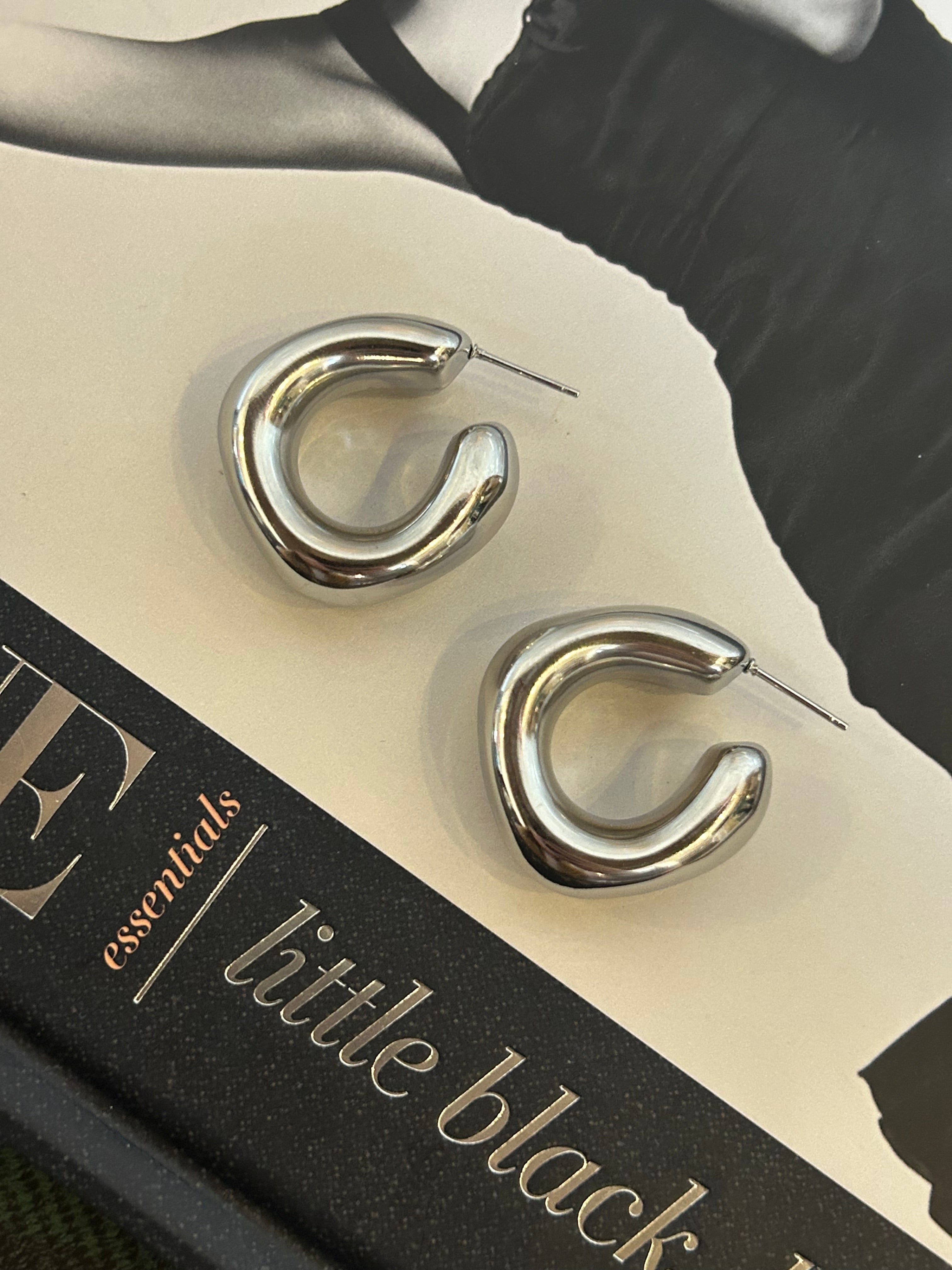 Fearlessly bold in their simplicity, these mini puff hoops command attention with sculptural dimension. Crafted in lustrous stainless steel, they deliver an edgy-luxe vibe that refuses to whisper. Perfect for stacking, layering, or making a solo statement, these compact stunners bring architectural flair to any look. Durable, hypoallergenic, and unapologetically chic.